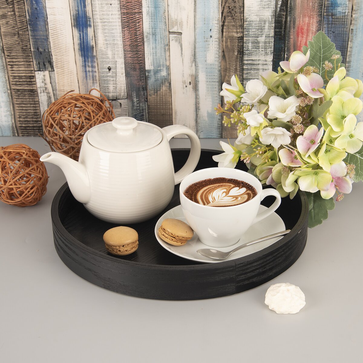 Kód produktu 153871Okrúhla servírovacia tácka čiernej farby, s priemerom 30 cm, je vyrobená z dreva a MDF dosky. Hodí sa na servírovanie kávy, múčnikov, ale poslúži aj ako zaujímavá dekorácia v interiéri.