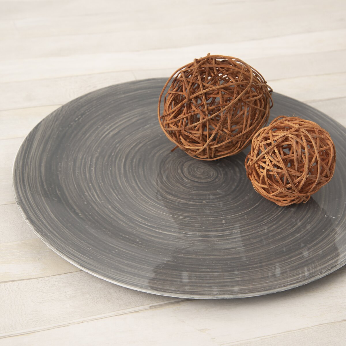 Kód produktu 153844Plastová guľatá tácka priemeru 33 cm, so zaujímavým špirálovým vzorom v šedej farbe, ozdobí štýlovo domácnosť. Možno ju použiť ako dekoráciu, ale aj ako servírovaciu tácku.