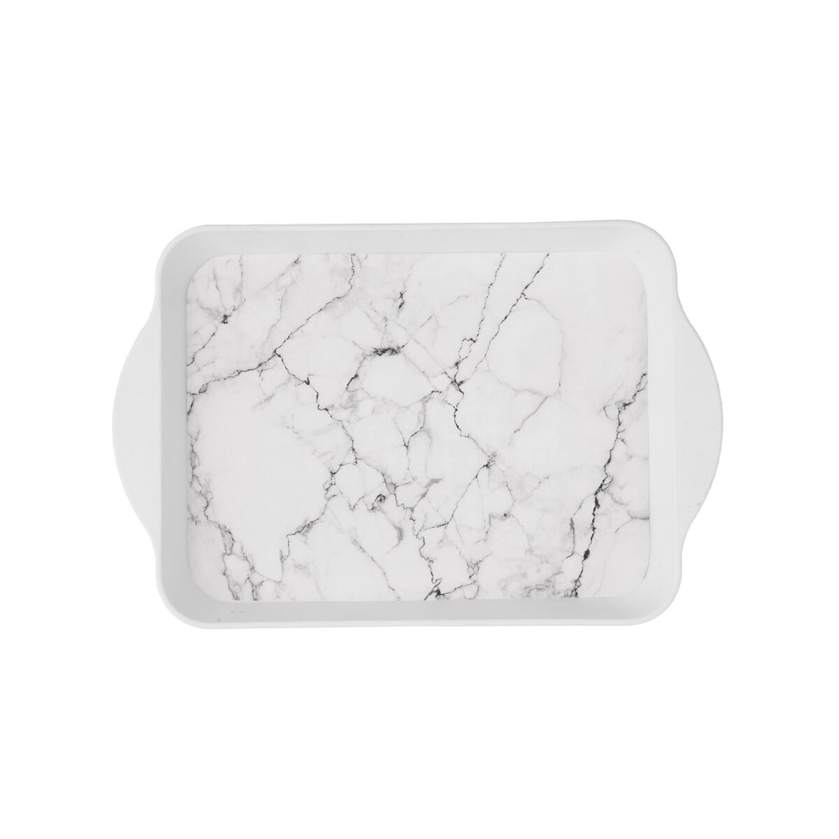Malú obdĺžnikovú tácku s nadčasovým dekorom bieleho mramoru využijete pri servírovaní najrôznejších dobrôt a nápojov, napr. malej kávy aj sušienok alebo bábovky na dezertnom tanieriku. Je vyrobená z kvalitného plastu PP, znesie teploty až +40 °C.