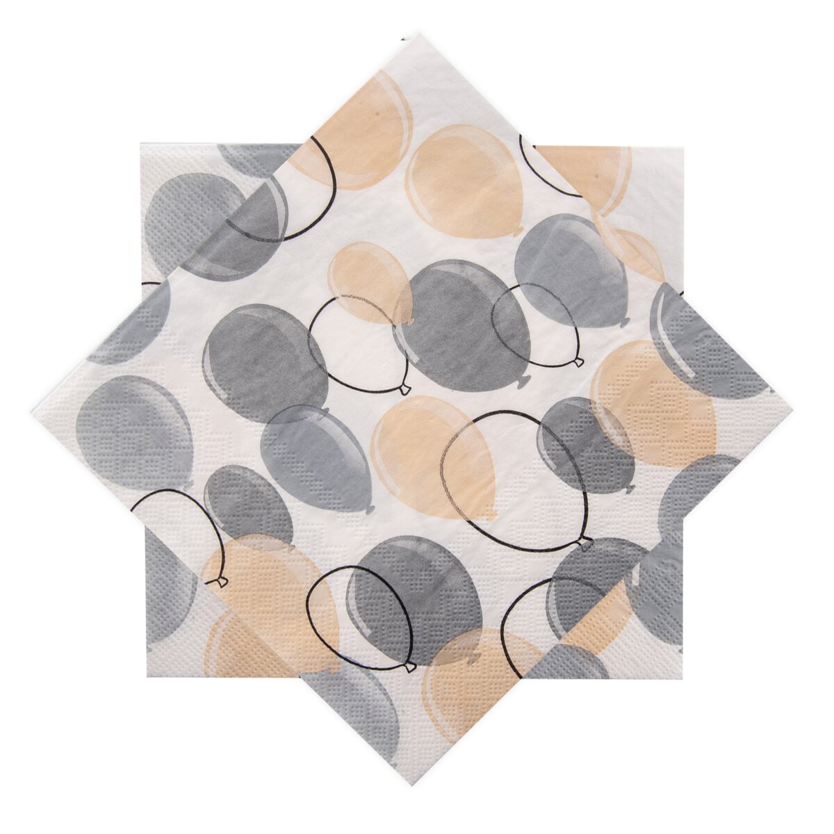 Kód produktu 842333Sada 20 ks svetlých papierových obrúskov s tlačeným motívom šedých balónikov. Majú veľkosť 33x33 cm a skvele doplnia prestretý stôl doma, na rodinnej alebo firemnej oslave.