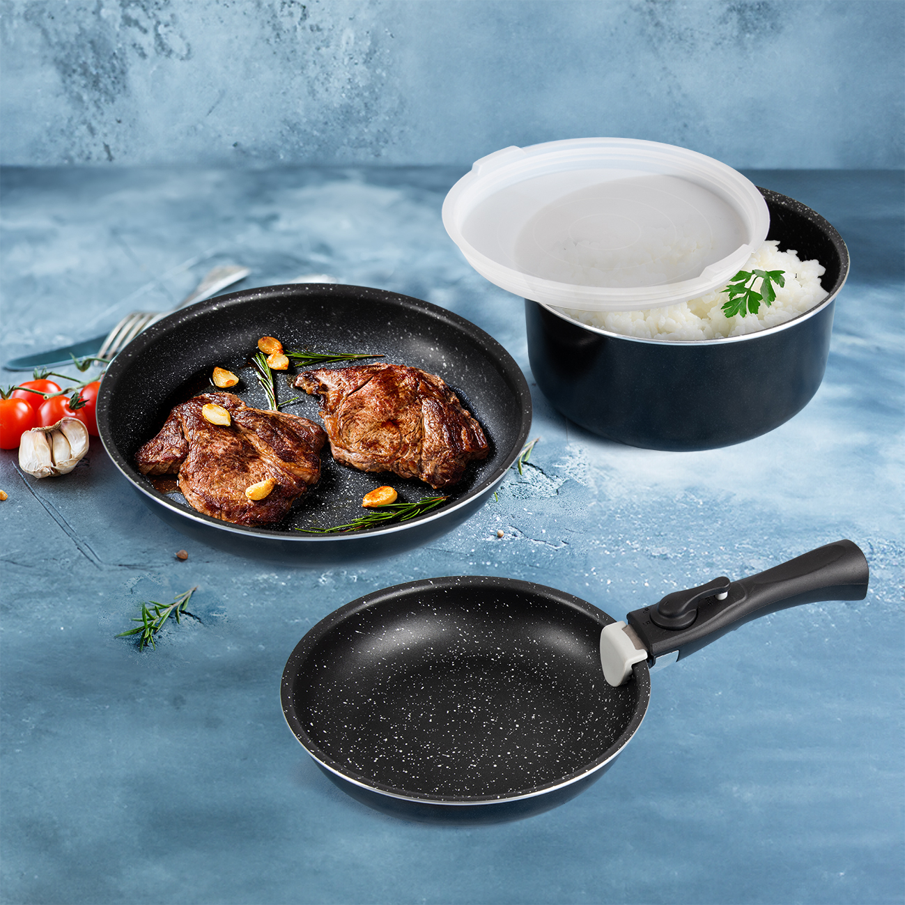 Stačí si vybaviť svoju kuchyňu niekoľkými veľkosťami panvíc a hrncov, pridať k nim odnímateľnú, samostatnú rukoväť, a máte vyhrané.
