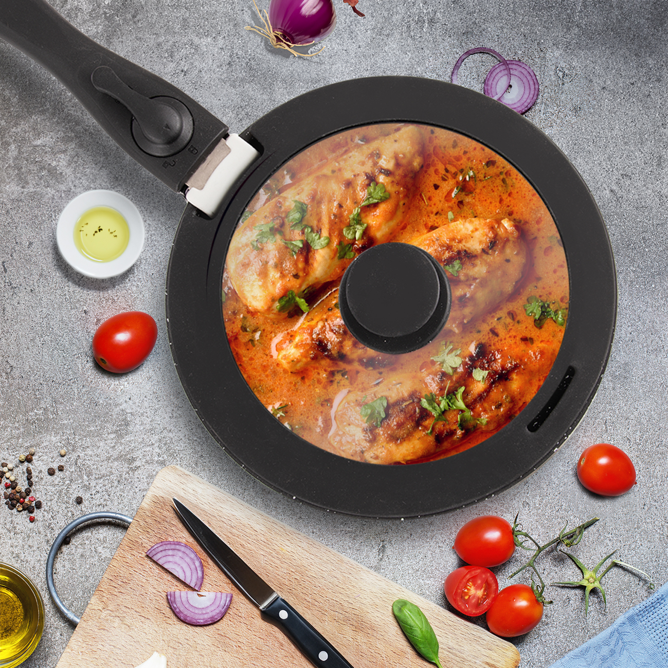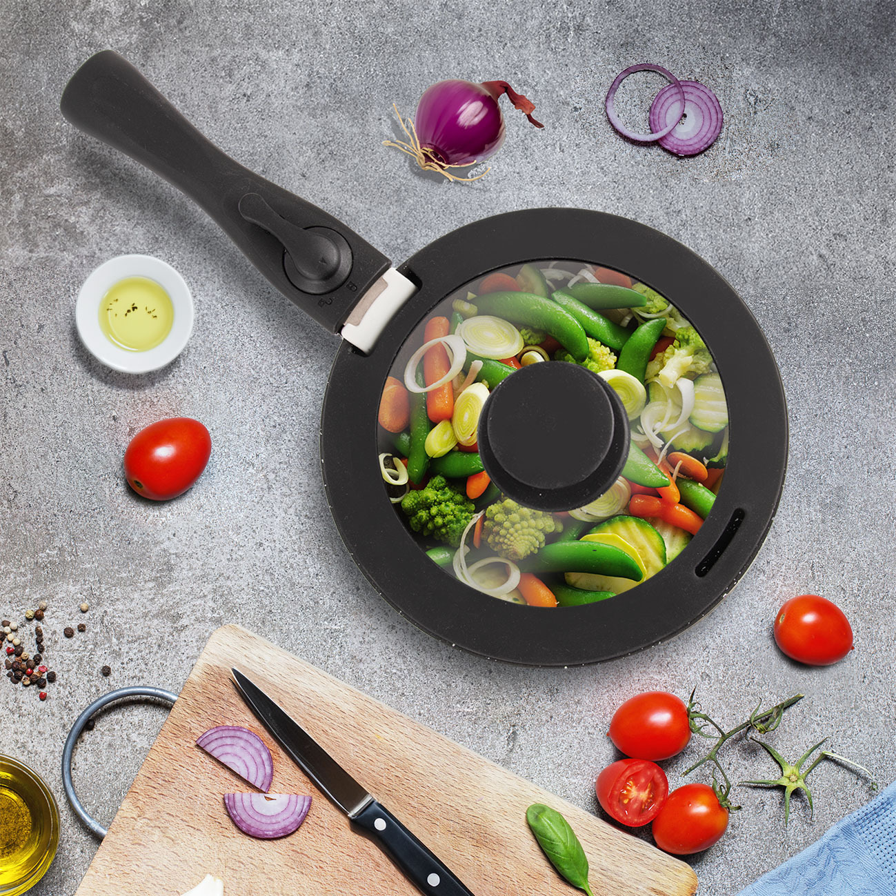 Súčasná doba nahráva šikovným riešením a inováciám, čo sa prejavuje aj v gastronómii a kuchynských potrebách. Preto vznikol riad spájajúci jednoduchý, ale účelný dizajn s kvalitou nepriľnavého povrchu PFLUON GRANIT.
