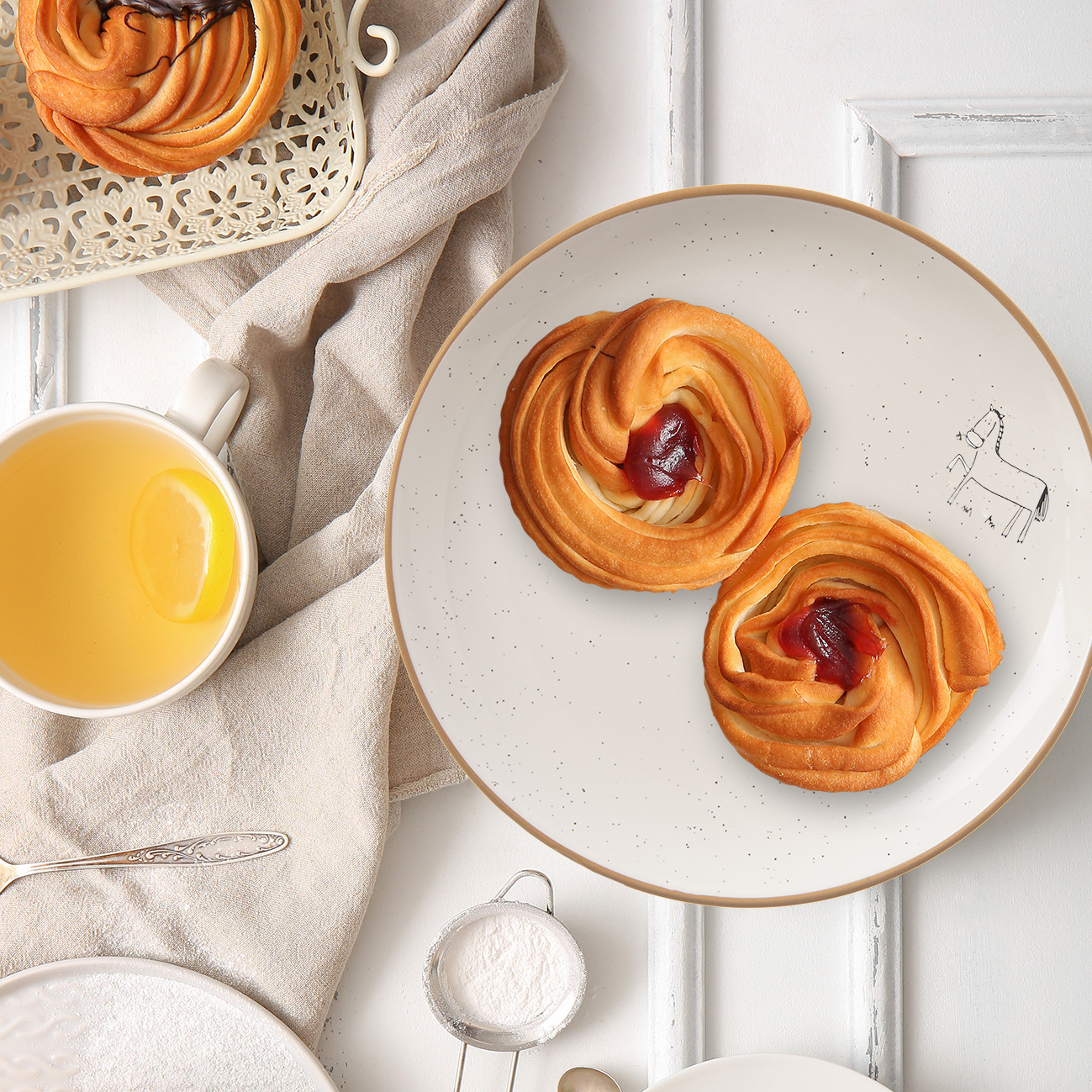 Kolekciu dopĺňajú dezertné a plytké taniere s potlačou aj bez a utierky, ktoré môžu byť užitočné pri utieraní riadu po nedeľnom obede na chalupe alebo sa stanú napronom uprostred stola.