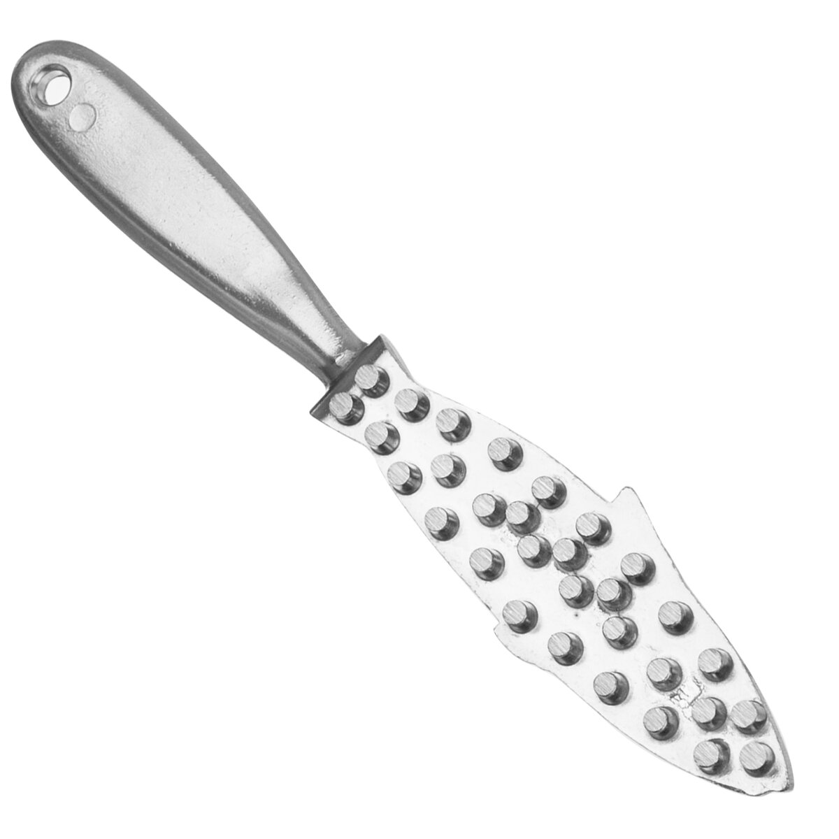 Škrabka na ryby odstráni veľmi ľahko šupiny a nečistoty. Uľahčí vám nepríjemnú prácu pri čistení rybích šupín. Materiál: hliník. Ostré hrany hrotov. Rozmery: d. 21,5 cm, š. 3 cm.