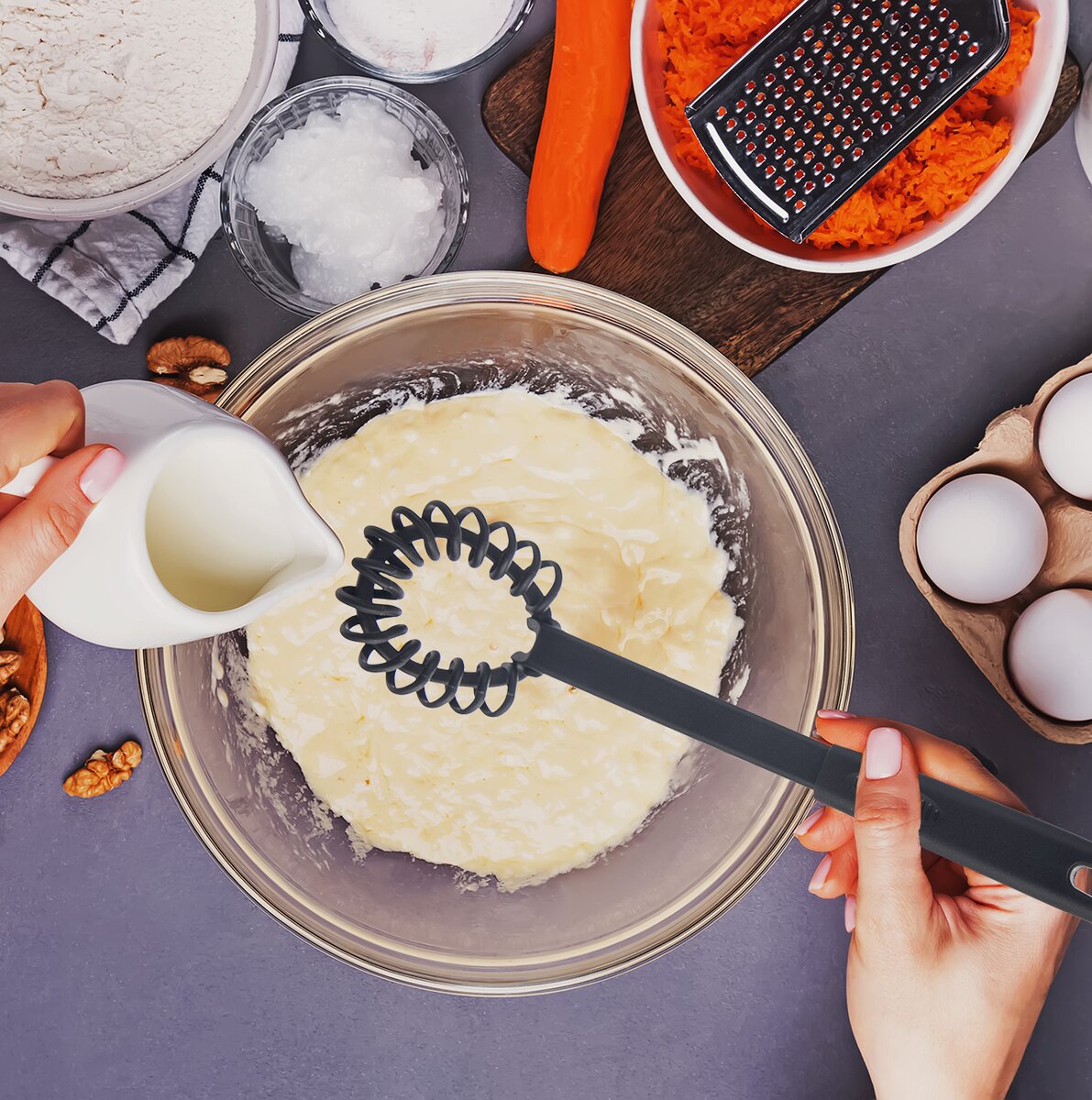 Pomôže s prípravou snehu, jemných hladkých krémov, bešamelu, omáčok, pri príprave pudingu, riedkych ciest nielen na palacinky, miešaných vajec aj majonézy.