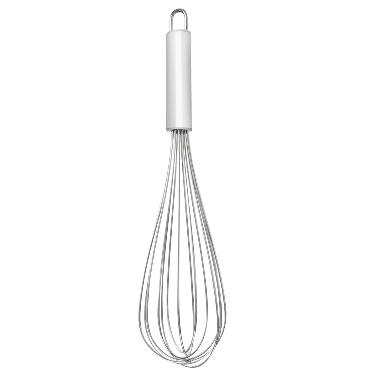 Veľká nerezová metlička na šľahanie s priemerom 6 cm, pre rýchle a ľahké ručné šľahanie a prevzdušnenie. Pomôže s prípravou snehu z bielkov, jemných hladkých krémov, bešamelu, pri príprave pudingu, riedkych ciest, miešaných vajec aj majonézy.
