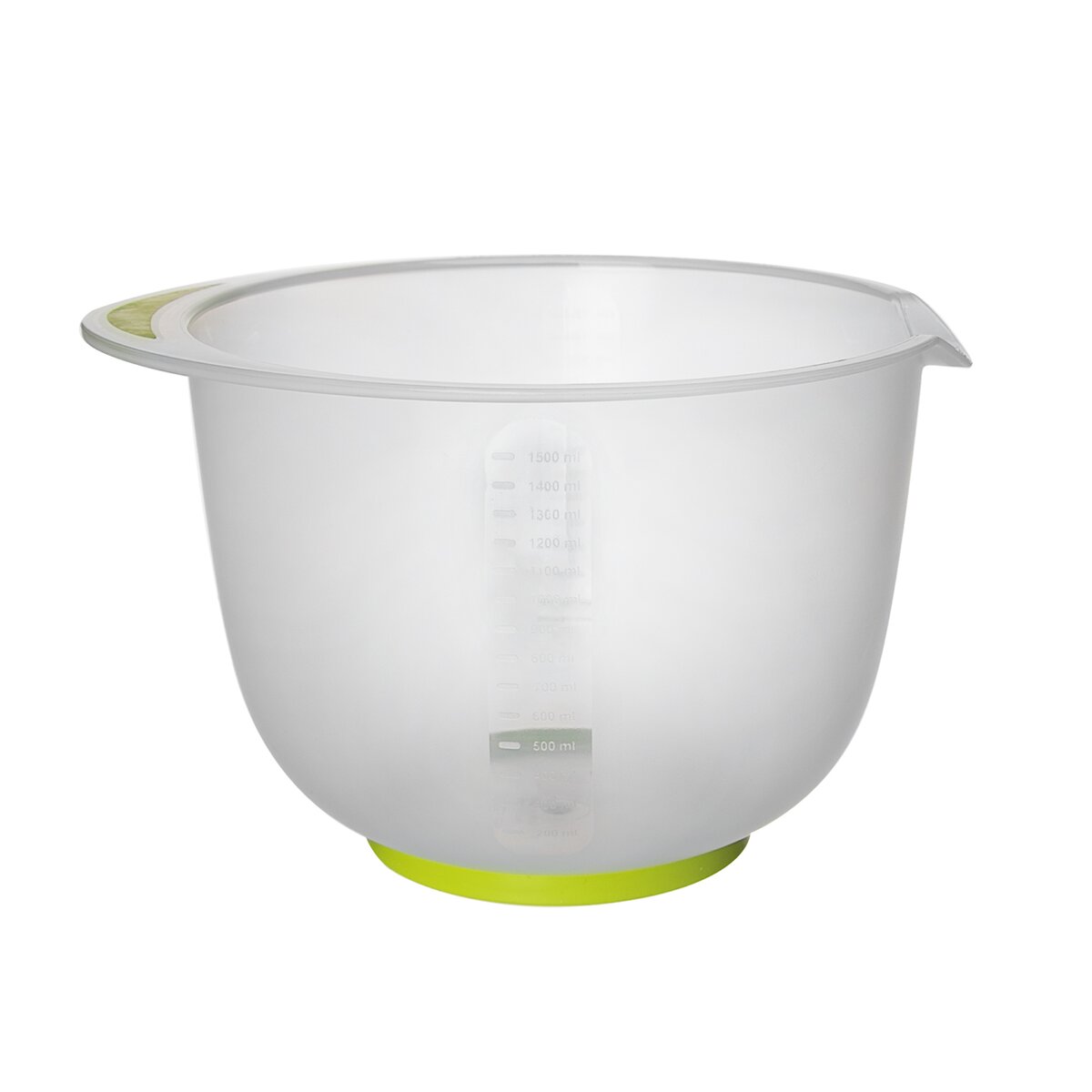 Kód produktu 120281Plastová misa v objeme 1,5 l s výlevkou, mäkčeným úchytom a protišmykovým dnom pre ľahké šľahanie bielkov, šľahačky, krémov aj cesta. S vyznačenou mernou stupnicou.