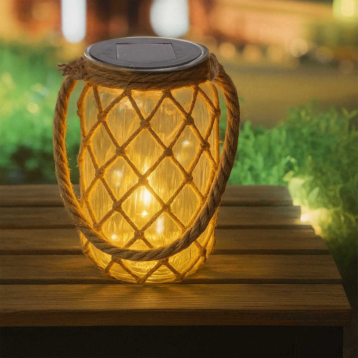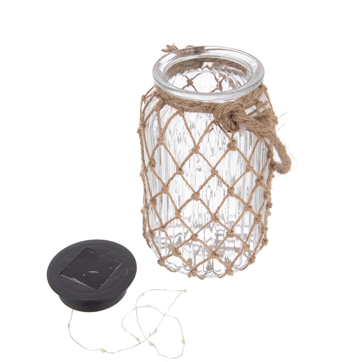 Kód produktu 351877Solárny lampáš je elegantný dekoratívny prvok, ktorý oživí váš interiér aj vonkajšie priestory. Je vyrobený zo skla a doplnený o prírodný jutový detail, vďaka čomu pôsobí štýlovo a zároveň prirodzene. Cez deň sa lampáš nabíja pomocou solárneho panelu a po zotmení sa automaticky rozsvieti teplým LED svetlom, ktoré vytvára útulnú a príjemnú atmosféru. Materiál: sklo, juta, plast PP. Rozmery: pr. 11 cm, v. 18,5 cm.