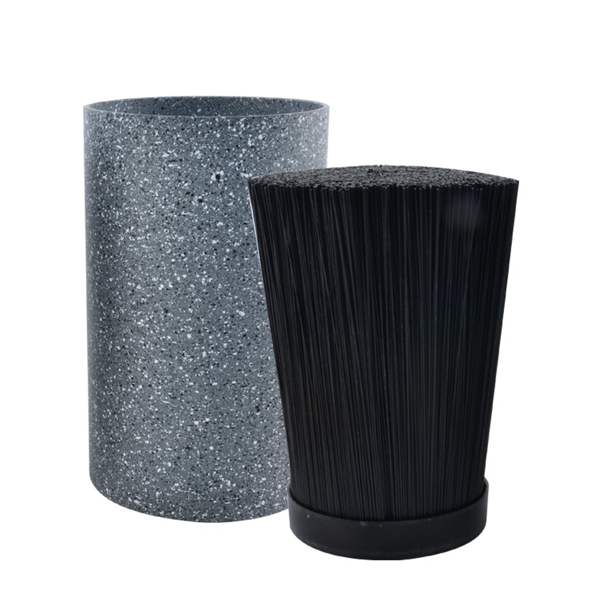 Kód produktu 540553Okrúhly plastový stojan na nože pr. 9 cm s farbou mramoru so syntetickými štetinami na uloženie kuchynských nožov aj nožníc.