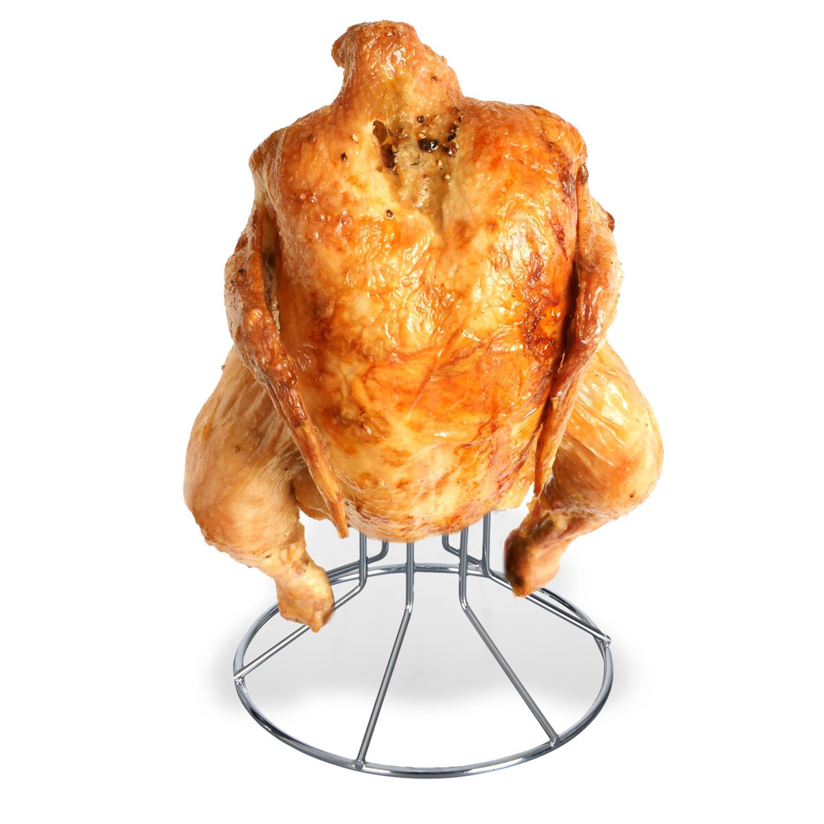 Tento drôtený stojan Vám pomôže pripraviť skvele prepečené kura. Jeho dolný priemer je 15 cm a horný 5,5 cm. Kurča nasadíme na stojan a položíme na pekáč, ktorý vložíme do rúry.