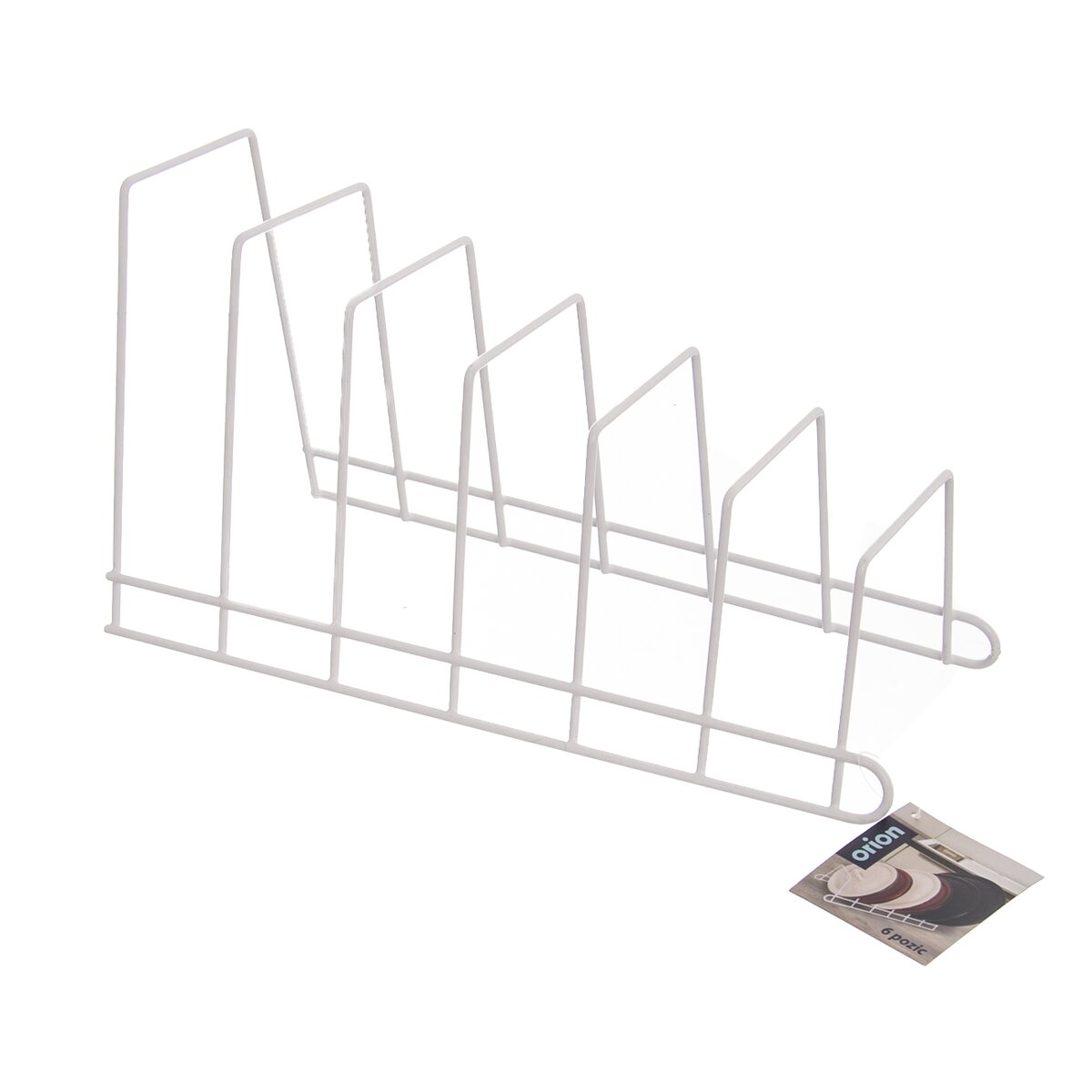 Praktický drôtený stojan s plastovou povrchovou úpravou zaistí bezpečné aj prehľadné uloženie až 6 kusov pokrievok. Či už nerezových, smaltovaných aj sklenených.