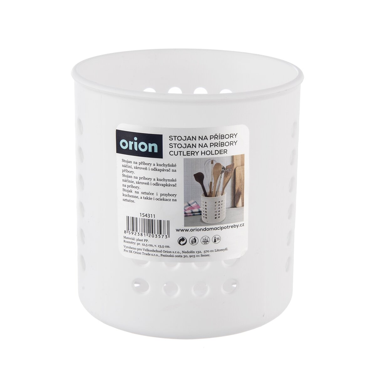 Kód produktu 154311Plastový biely stojan s otvormi je určený na ukladanie kuchynského náčinia na linke, príborov alebo slúži ako odkvapkávač na príbory.