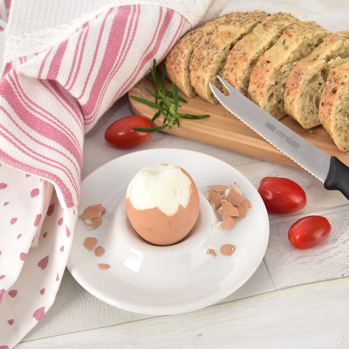 Výdatné raňajky s množstvom kvalitných bielkovín, napríklad v podobe varených domácich vajíčok, je ten pravý štart do nového dňa. Vajíčko na tvrdo alebo na mäkko je možné servírovať v jednoduchom keramickom stojane.