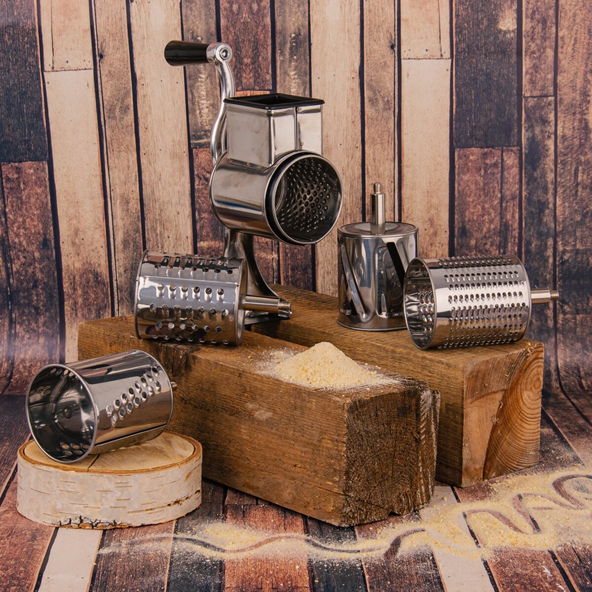 Kód produktu 130303Nerezový strojček s 5 bubnovými nástavcami na prípravu domácej strúhanky z tvrdého pečiva, ale aj na strúhanie orechov, tvrdých syrov alebo uhoriek.
