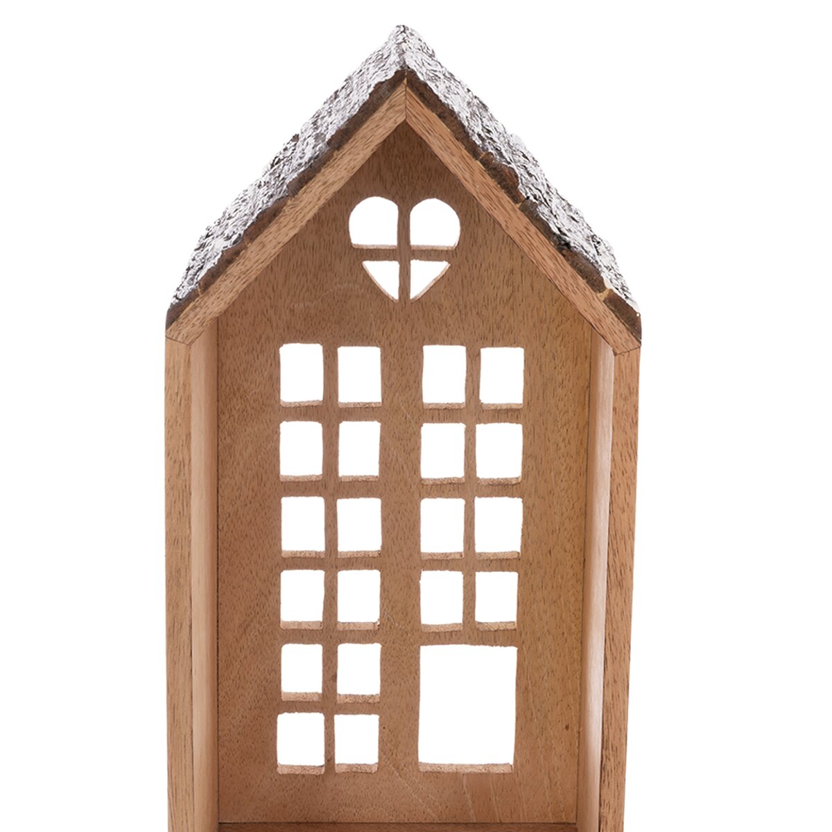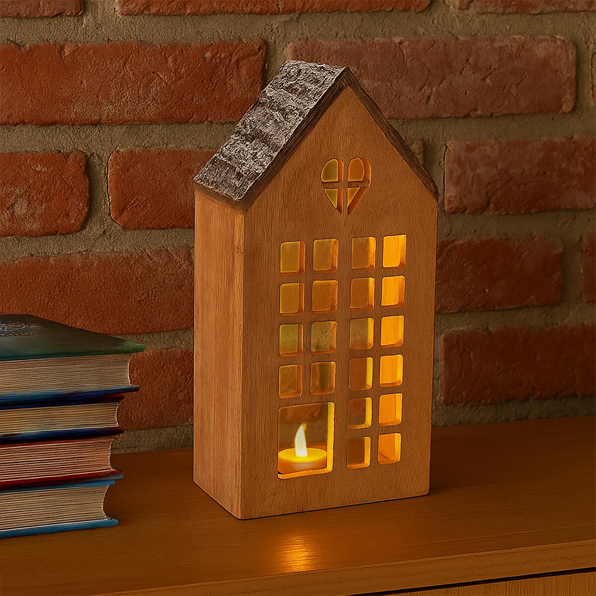 Kód produktu 351902Svietnik z mangového dreva v tvare domčeka bude krásnym a štýlovým prvkom interiéru počas celého roka. Jeho prírodný materiál a originálny dizajn v podobe domčeka dodajú priestoru útulnú atmosféru. Uprostred svietnika sa nachádza stojan určený na čajovú sviečku. V prípade jej použitia však nenechávajte svietnik bez dozoru a vždy dohliadnite na to, aby plameň nesiahal príliš vysoko. Pre väčšiu bezpečnosť môžete namiesto klasickej sviečky použiť aj bezpečnú variantu v podobe LED sviečky. Skvele poslúži ako vkusný a nápaditý darček. Materiál: mangové drevo, kov. Rozmery: 19,5x10x38,5 cm.