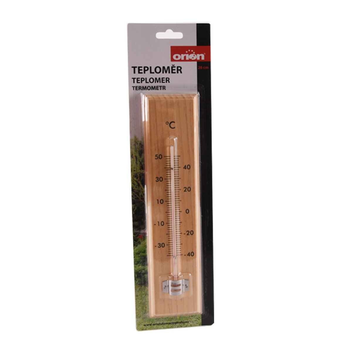 Teplomer využijete na meranie vonkajšej aj vnútornej teploty. Stupnica od - 30 ° C do 50 ° C. Materiál: drevo. Teplomer upevnite vonku na miesto, ktoré nie je vystavené priamemu slnečnému žiareniu. Bez ortuti. Rozmery: 6,2x2x26 cm.
