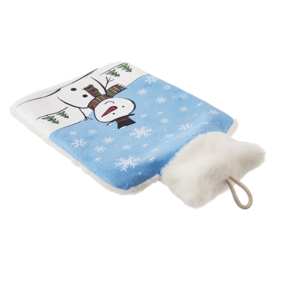 Tento termofor tvorí klasická gumová fľaša s výlevkou, zaistenou skrutkovacím uzáverom. Je vložená do plyšového obalu z polyesteru. Motív usmievavého snehuliaka je originálny a roztomilý.