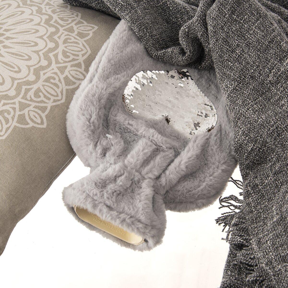 Kód produktu 830639Termofľaša s objemom 1,6 l v šedom plyšovom obale, s flitrovým motívom srdca, slúži na plnenie teplou vodou. Slúži na prehriatie lôžka aj natiahnutého chrbta alebo brucha.