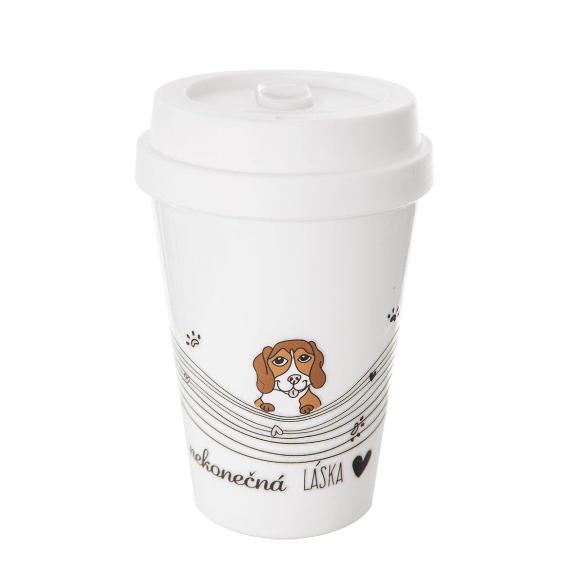 Kód produktu 112270Uzatvárateľný plastový termohrnček s objemom 0,35 l s nápisom NEKONEČNÁ LÁSKA a originálnym dekorom psa.