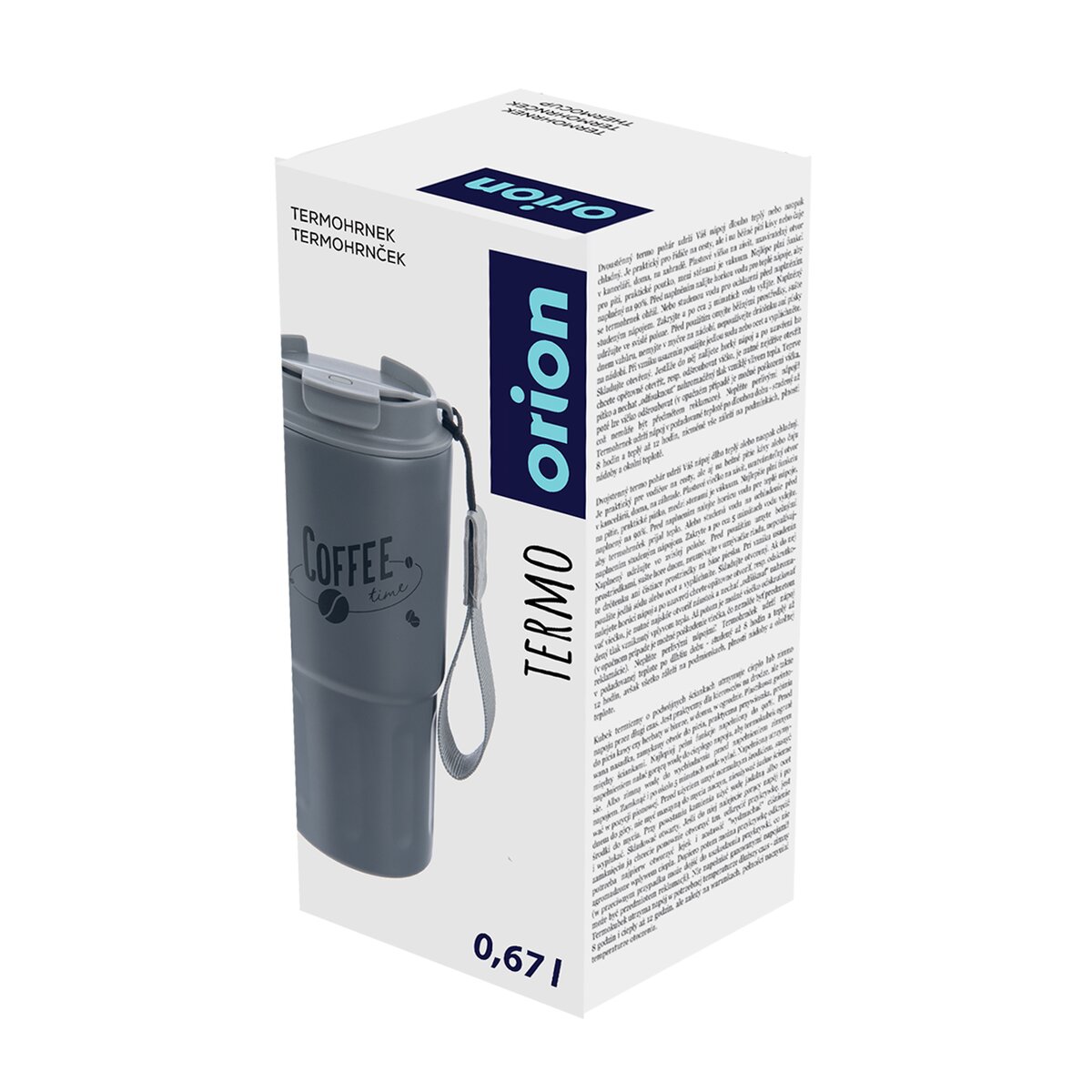 Kód produktu 112281Nerezový termohrnček v šedom odtieni má celkový objem 0,67 l a je uzavretý plastovým viečkom s tesnením a s odklápacím uzatváraním otvoru na pitie. Udrží nápoje v požadovanej teplote, ľahko sa prenáša vďaka nylonovému pútku.