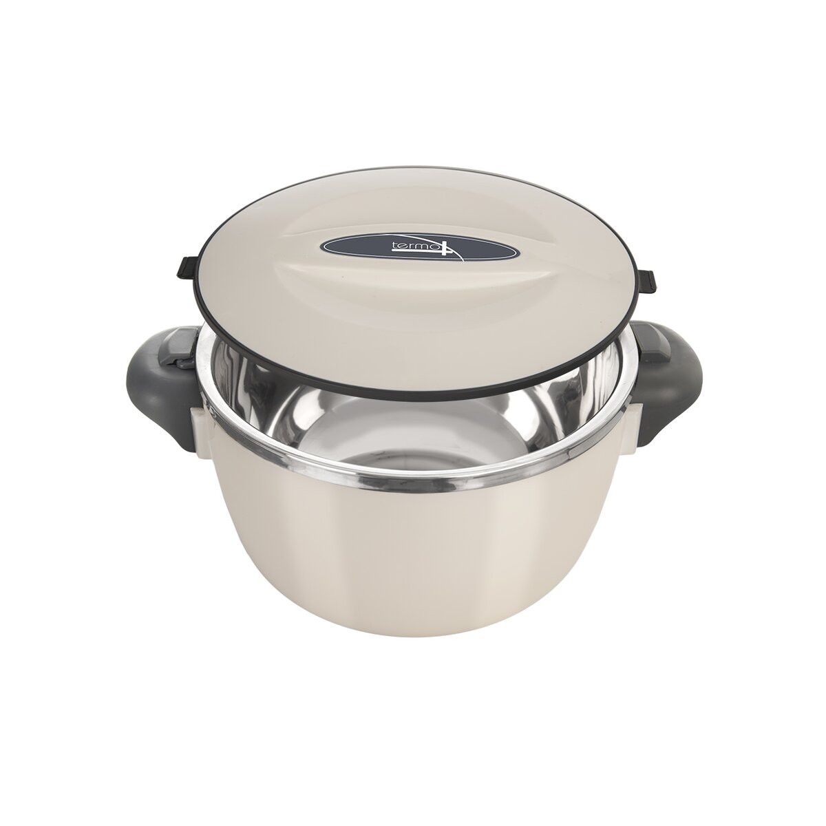 Kód produktu 128519Praktická biela plastová termomisa TERMO má celkový objem 1,1 l. Je opatrená hladkým nerezovým vnútrom a otočným termo viečkom. Slúži na uchovanie vložených teplých alebo studených pokrmov.