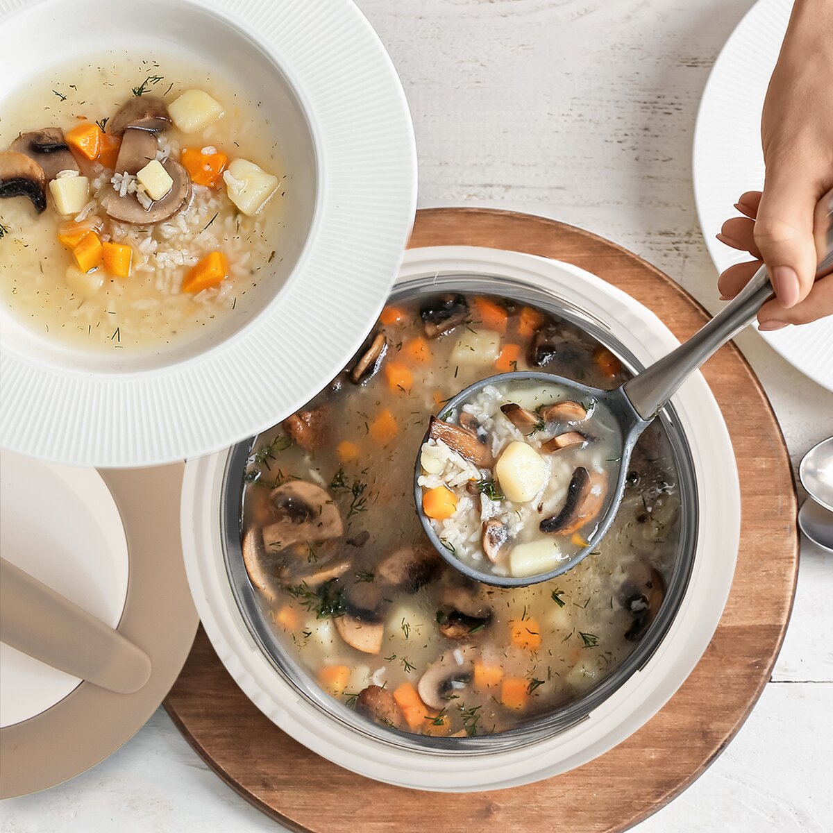Môžete si tak vziať väčšie množstvo jedla so sebou do práce, na dovolenku alebo dopraviť hotové jedlo svojim blízkym. Skladá sa z plastového obalu a nerezového vnútra, úžitkový objem je 3 l. Jednoduché uzavretie misky umožňuje otočné plastové termo viečko.