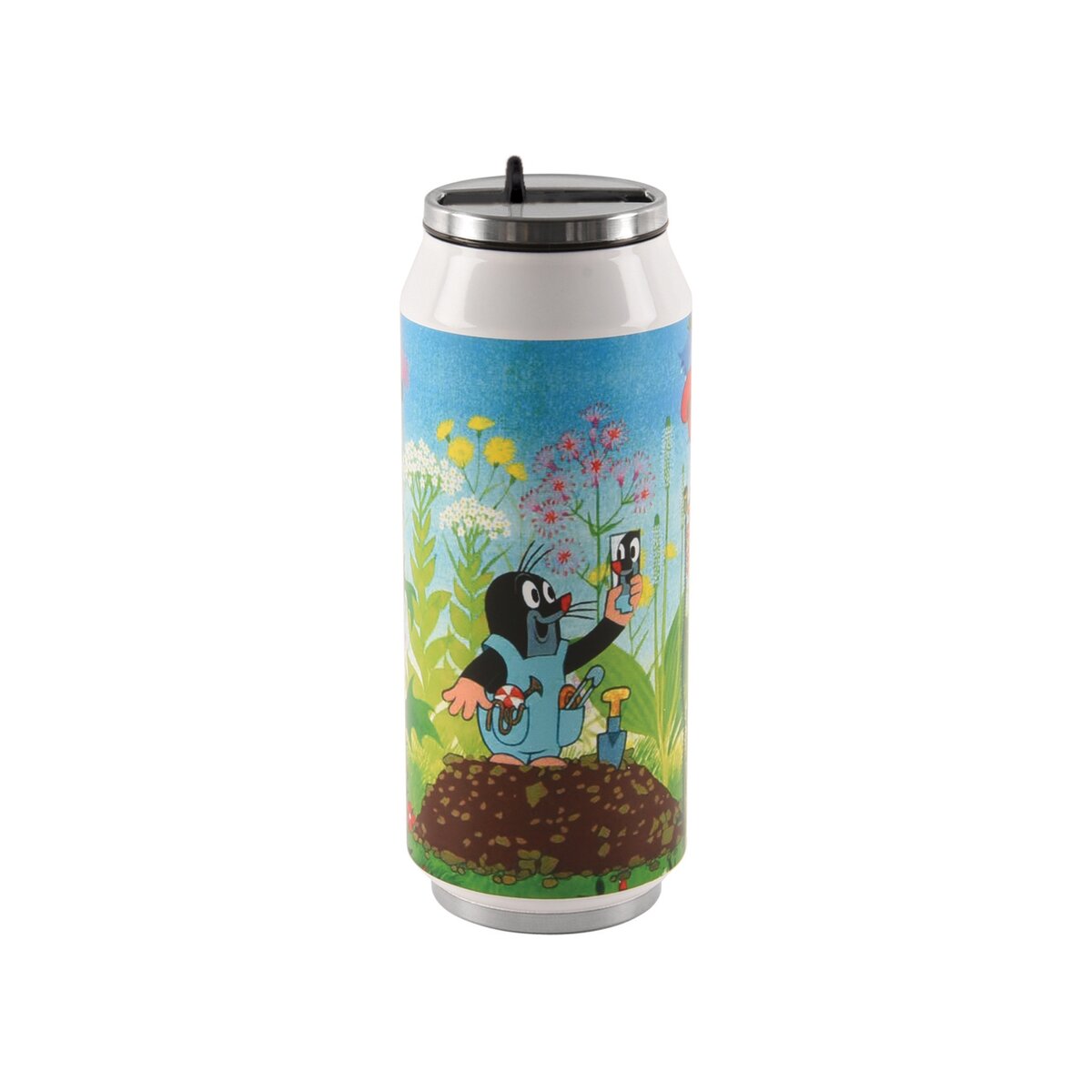 Termoska v tvare plechovky je veľmi zaujímavá a nápaditá svojím tvarom. Udrží 12 hodín teplú a 8 hodín studenú vodu. Výklopný náustok vo viečku termosky. Viečko na závit so silikónovým tesnením. Materiál: nerez, plast. 3 varianty - Krtko. Rozmery: objem 0,4 l, pr. 6,5 cm, v. 17 cm.