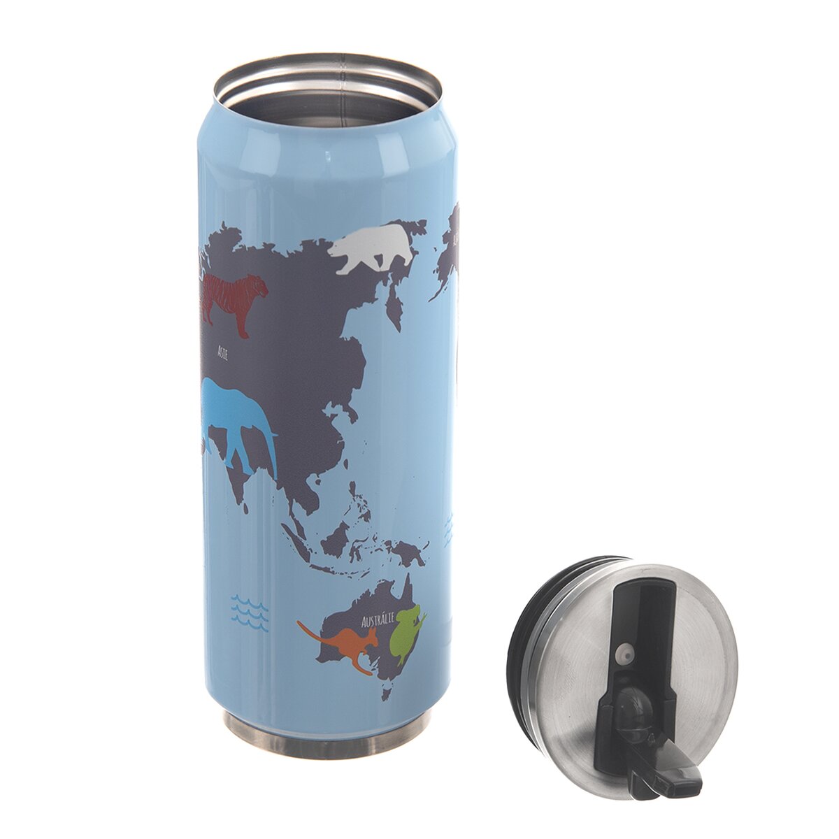 Viac informáciíModerná termoplechovka s motívom zemegule a zvierat, ktoré žijú na rôznych kontinentoch, poteší malých prírodovedcov. Navyše udrží až 12 hodín teplú a 8 hodín studenú vodu vďaka zdvojenej nerezovej stene.