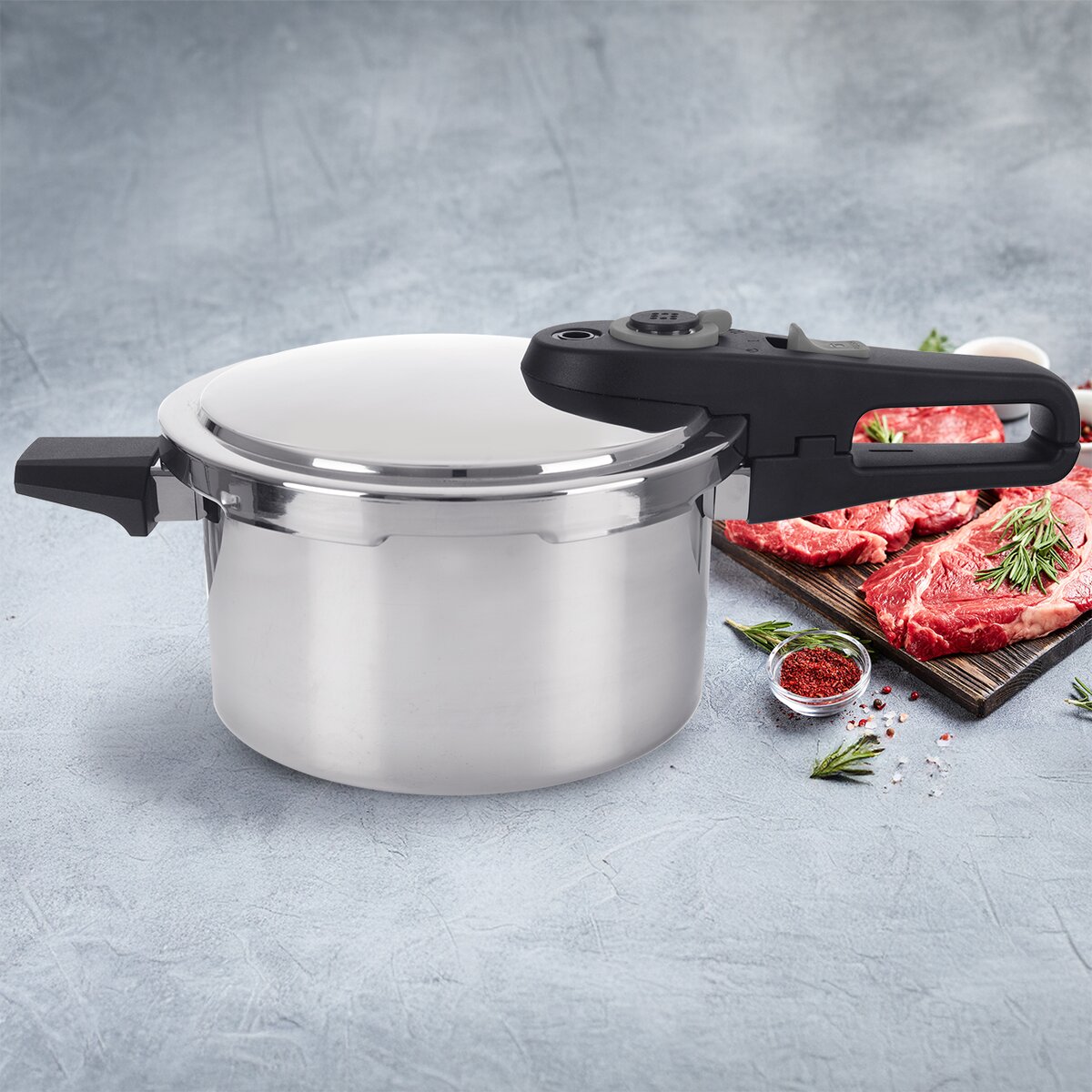 Hrubostenný hrniec so sendvičovým dnom sa uzatvára bezpečnou tlakovou pokrievkou, vďaka ktorej je možné rýchlejšie uvariť hovädzie mäso na guláš, králika na smotane, segedín, zverinu alebo bravčové koleno. A kto nemá čas niekoľko hodín ťahať mäsový vývar, ocení rýchlu a jednoduchú prípravu. Jednoducho rýchlovka z papiňáka.