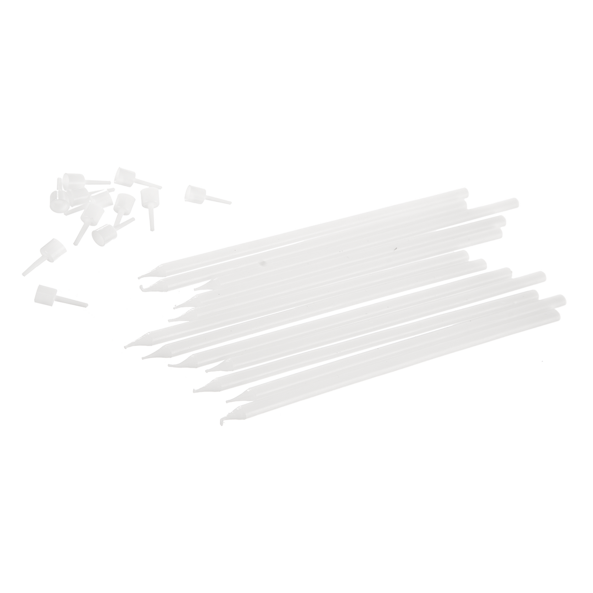Kód produktu 822251Biele tortové sviečky dĺžky 14,5 cm, s nástavcami opatrenými hrotmi, sú neoddeliteľnou súčasťou každej oslavy narodenín či výročia. V balení je 12 tenkých sviečok.