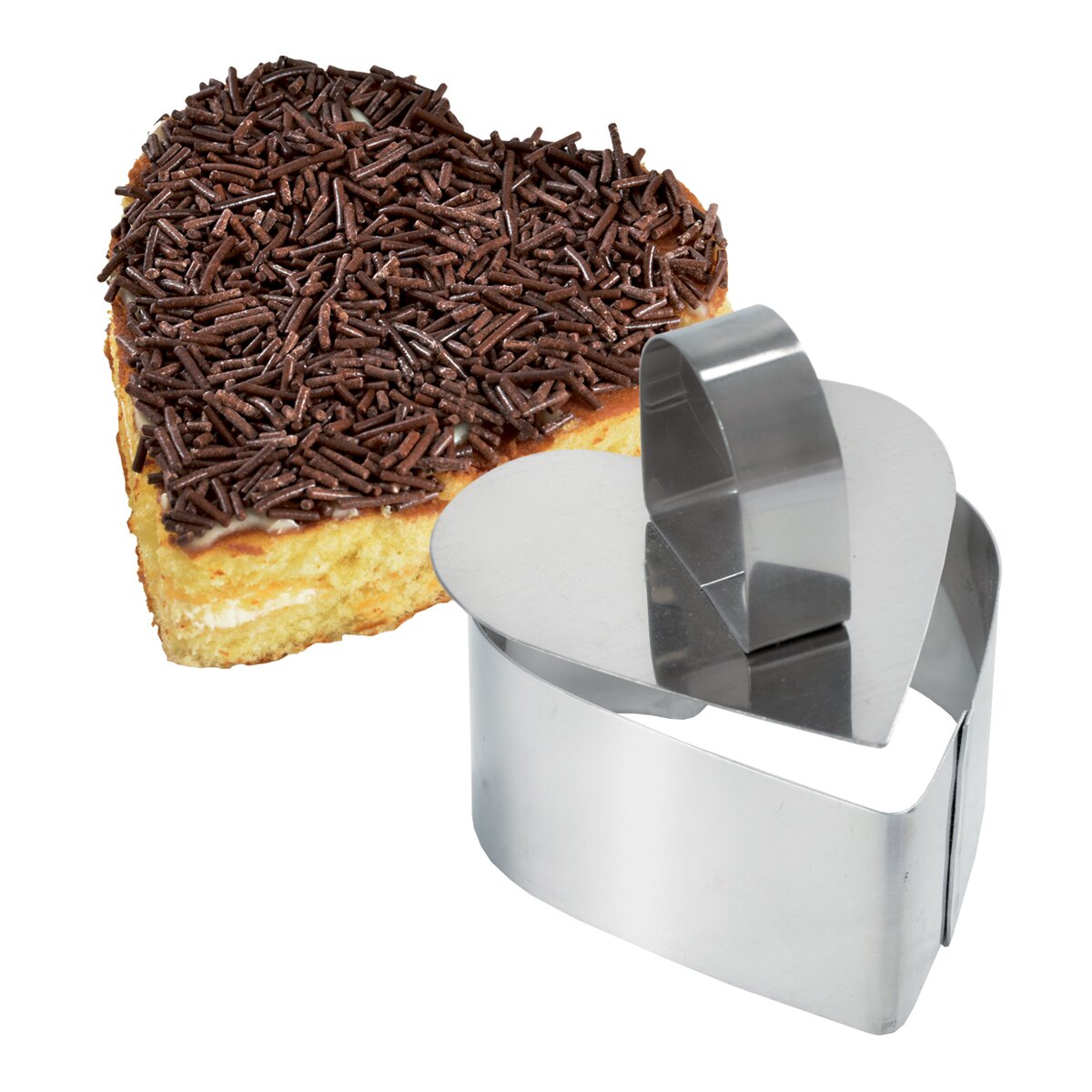Kód produktu 124903Forma na pečenie - tvorítko Vám pomôže vytvoriť krásne zákusky, tortičky, slané dobroty, ale tiež zaujímavo naservírovať prílohy. Materiál: nerez. Tvar srdce. S vyberaním z formy Vám pomôže piest. Rozmery: 8x8,5x4 cm.