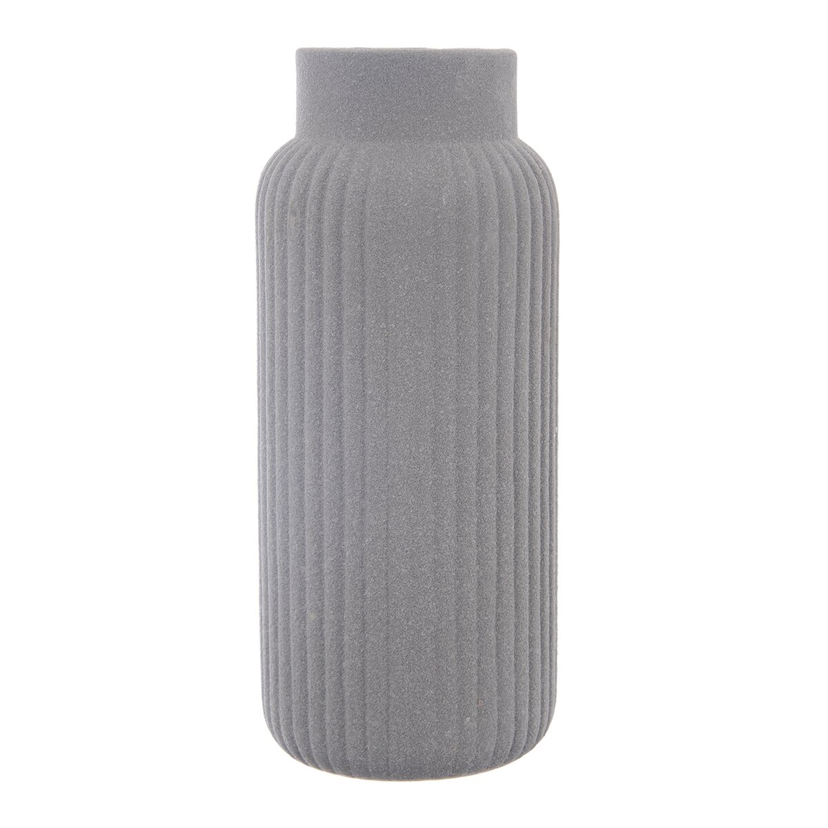 Kód produktu 820185Šedá porcelánová váza s hrubou štruktúrou a pozdĺžnym rebrovaním má výšku 24,5 cm a je vhodná na rezané aj suché kvety alebo dekoratívne trávy a vetvičky.