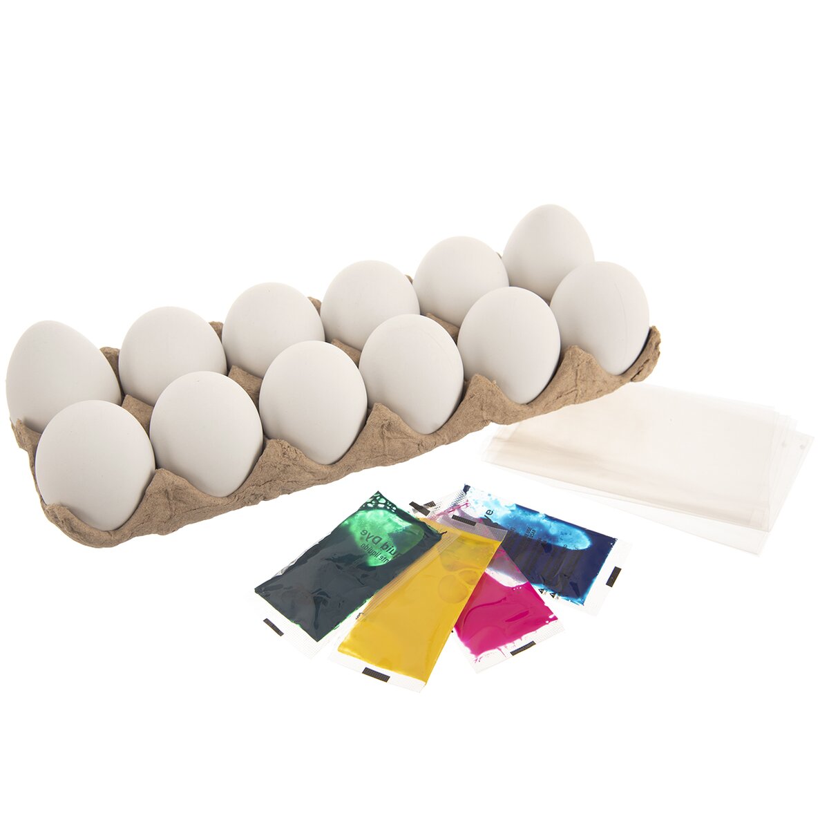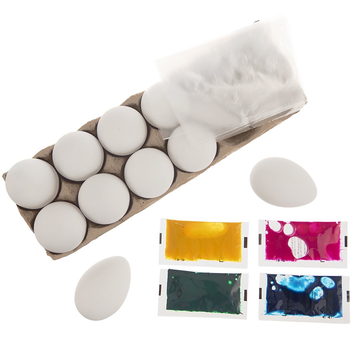 Kód produktu 842279Kreatívna sada na maľovanie plastových vajíčok pomôže vytvoriť originálnu veľkonočnú dekoráciu. Súprava obsahuje 12 plastových vajíčok, 4 rôzne tekuté farby a 4 vrecká.