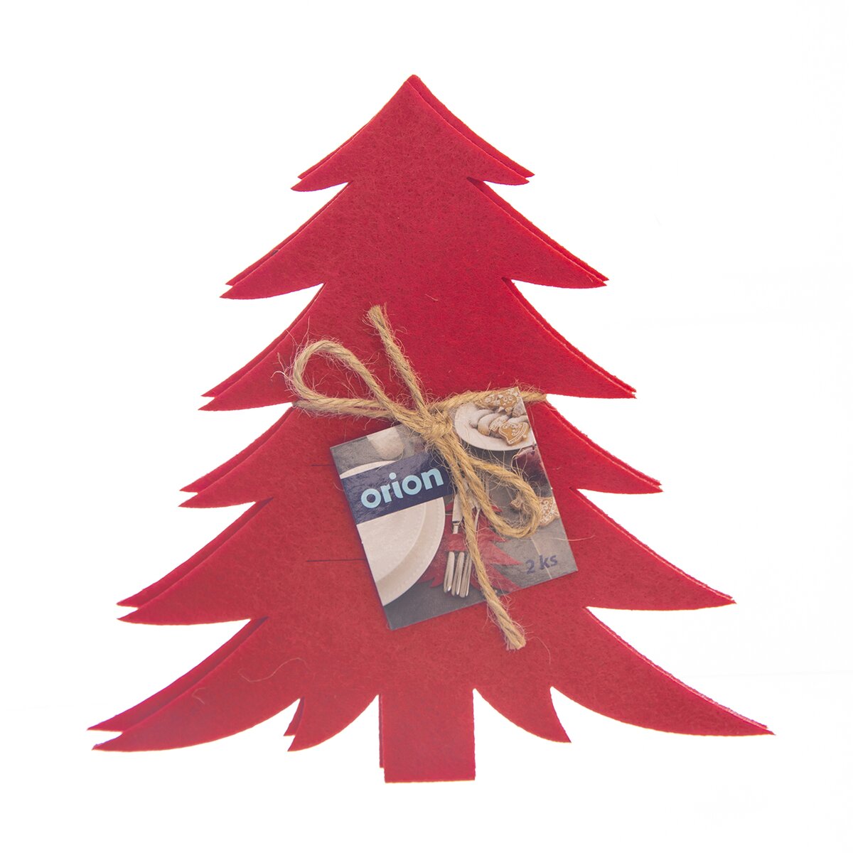 Kód produktu 728017Sada 2 kusov filcových vreciek v červenej farbe ozdobí prestretý stôl predovšetkým v čase Vianoc. Tvar stromčeka a 2 preseknuté otvory umožnia ľahké vloženie príborov.