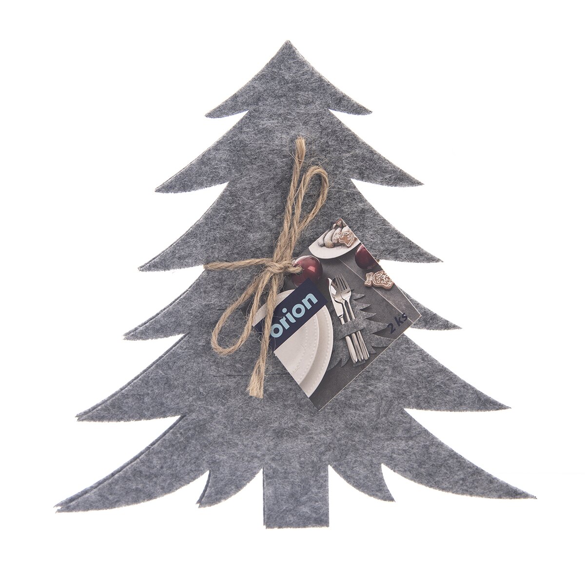Kód produktu 728018Sada 2 kusov filcových vreciek v šedej farbe ozdobí prestretý stôl predovšetkým v čase Vianoc. Tvar stromčeka a 2 preseknuté otvory umožnia ľahké vloženie príborov.