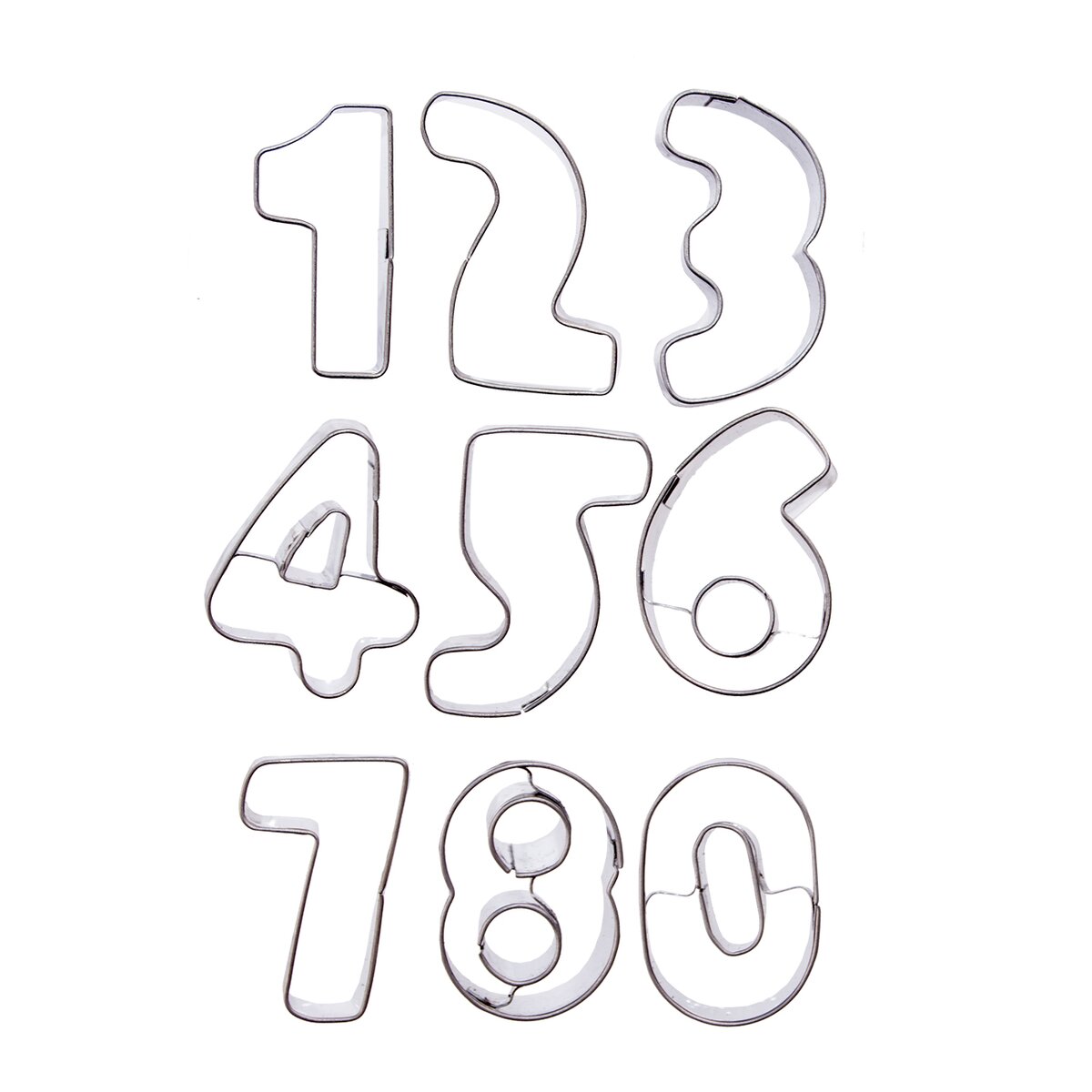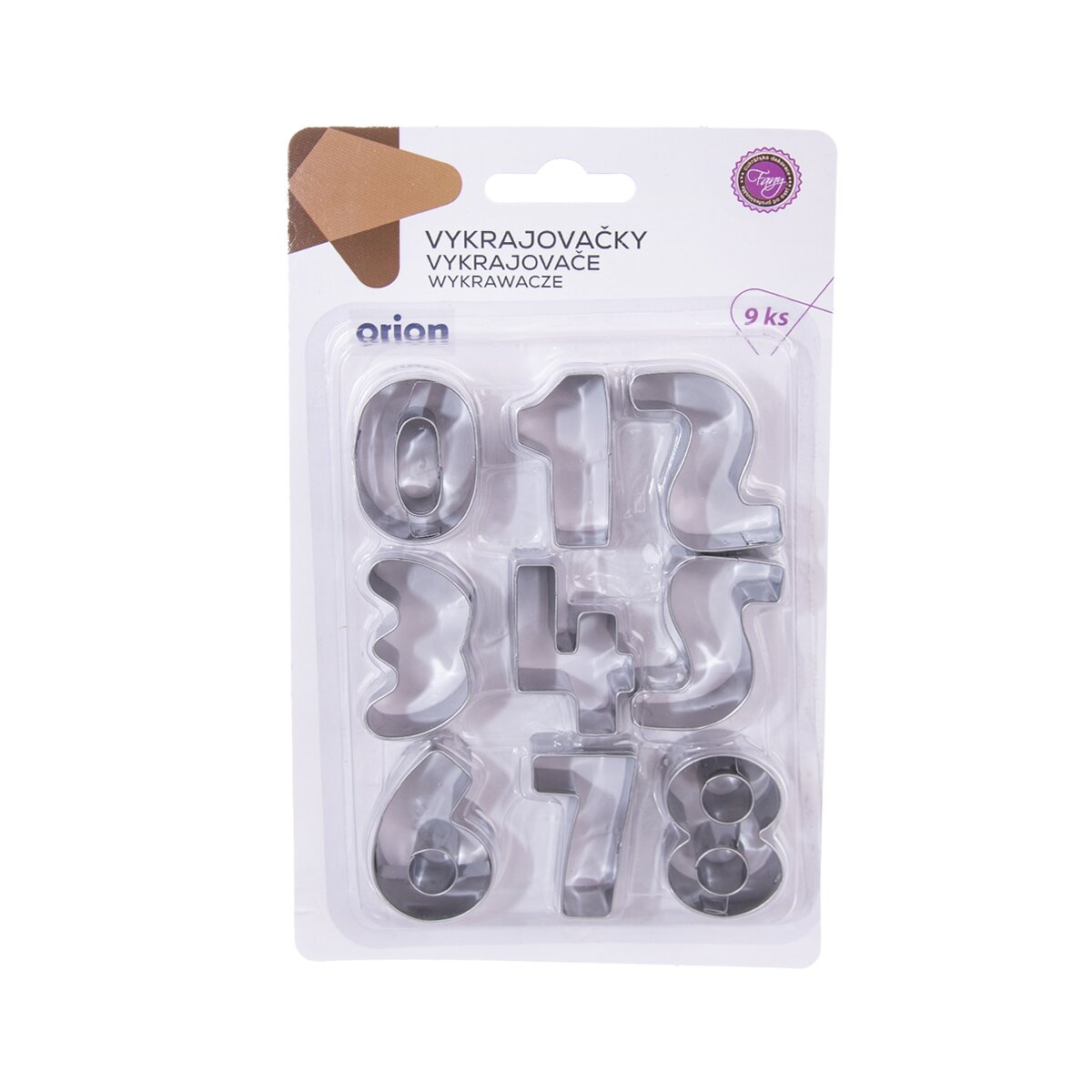 Formičky na vykrajovanie v tvare číslic 0 až 9 sú ideálne na vykrajovanie ozdôb z marcipánovej hmoty na torty a zákusky. Sada 9 ks. Materiál: nerez. Rozmery: v. 3,5 cm.