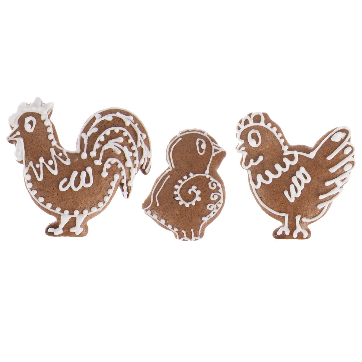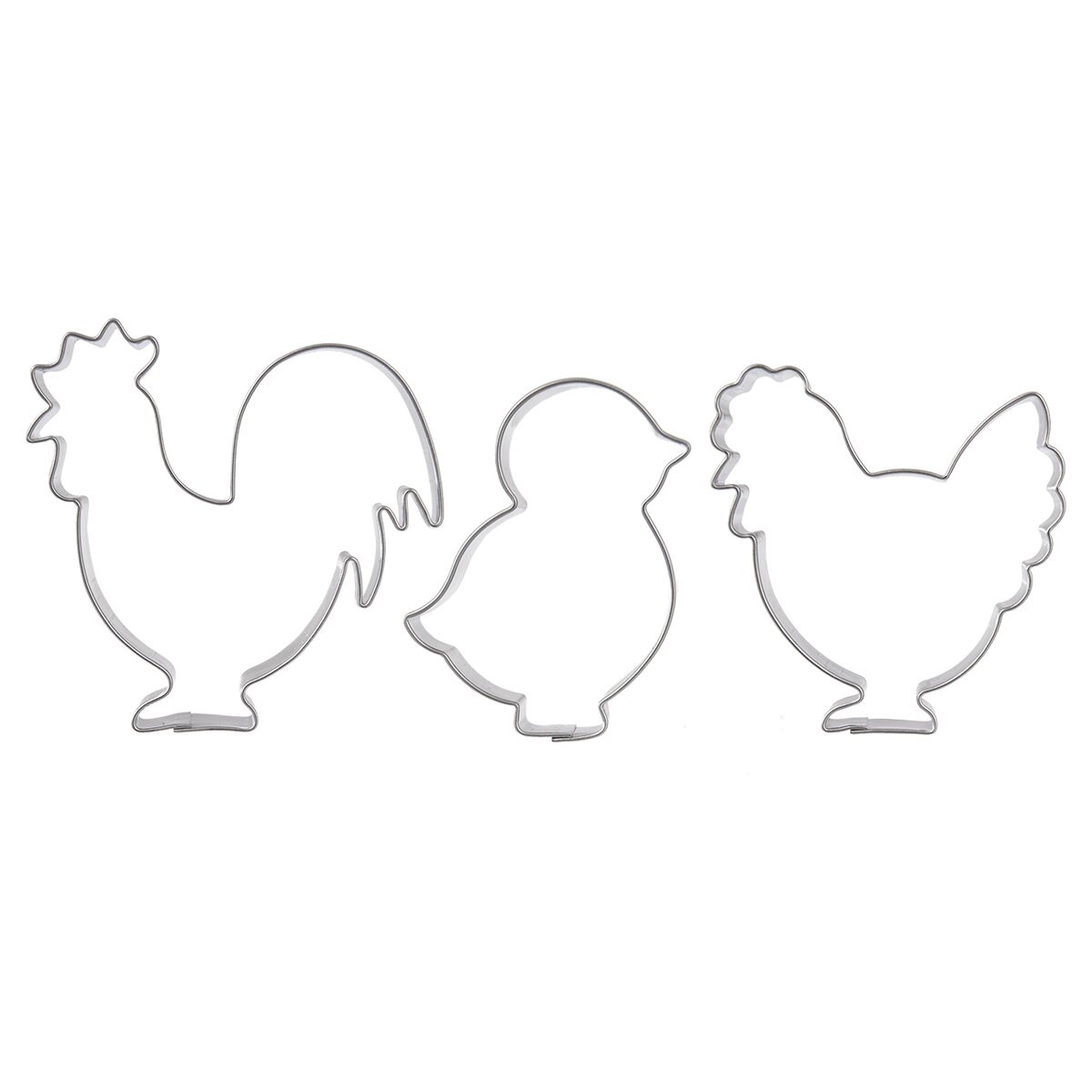 Rozmery vykrajovačiek: kohútik 6,5x6,5x1,5 cm, sliepočka 6x6x1,5 cm, kuriatko 4x5x1,5 cm.
