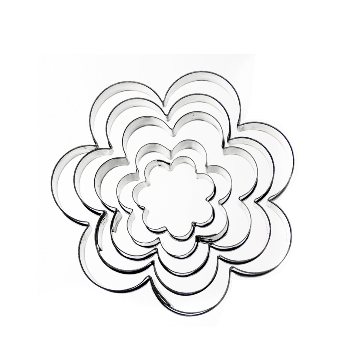 Kód produktu 121152Sada 5 kusov nerezových vykrajovačiek KVET vo veľkosti 2-5,8 cm pre kreatívne pečenie koláčov a sušienok alebo prácu s marcipánom.