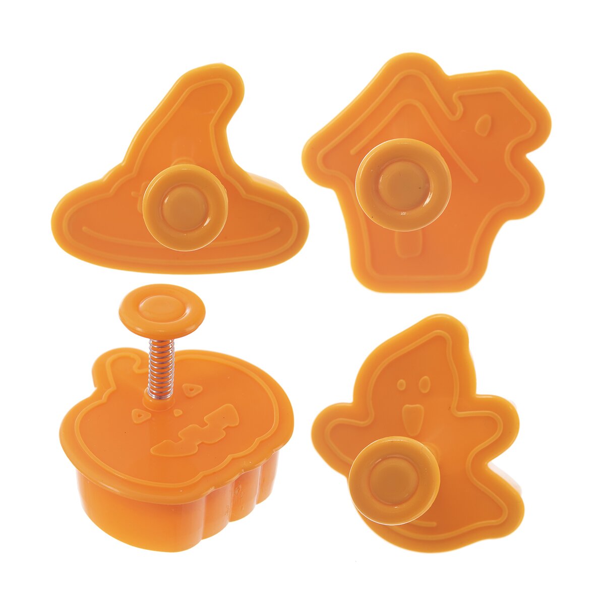 Kód produktu 127454Sada 4 kusov plastových vykrajovačiek, opatrených piestom s plochou, ktorá odtlačí halloweensky reliéf do vyvaľkaného cesta.