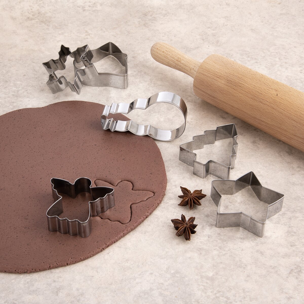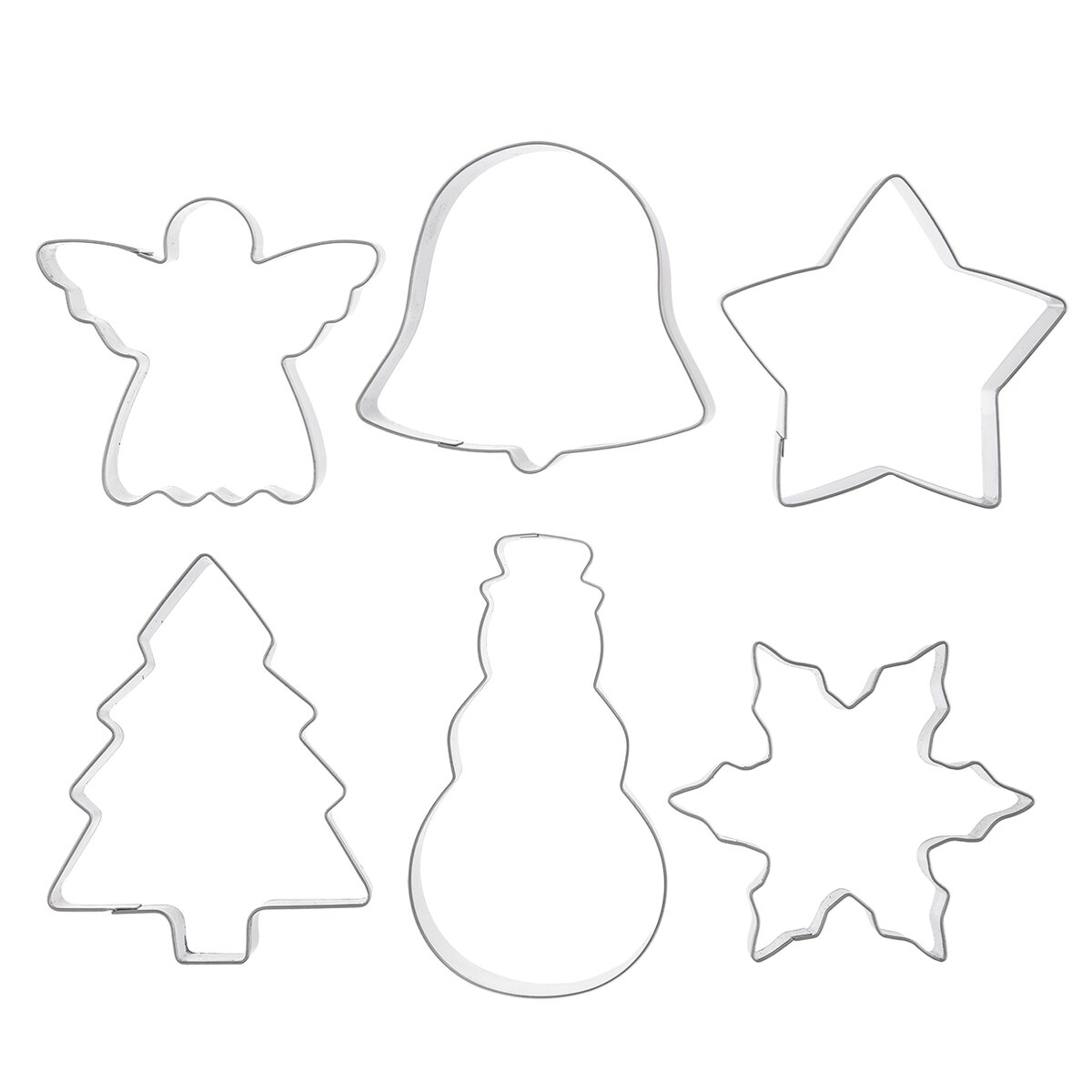 Kód produktu 132610Sada 6 rôznych vianočných tvarov - snehuliak, vločka, anjel, zvonček, hviezda a stromček na vykrajovanie perníčkov, sušienok aj na iné kreatívne práce.
