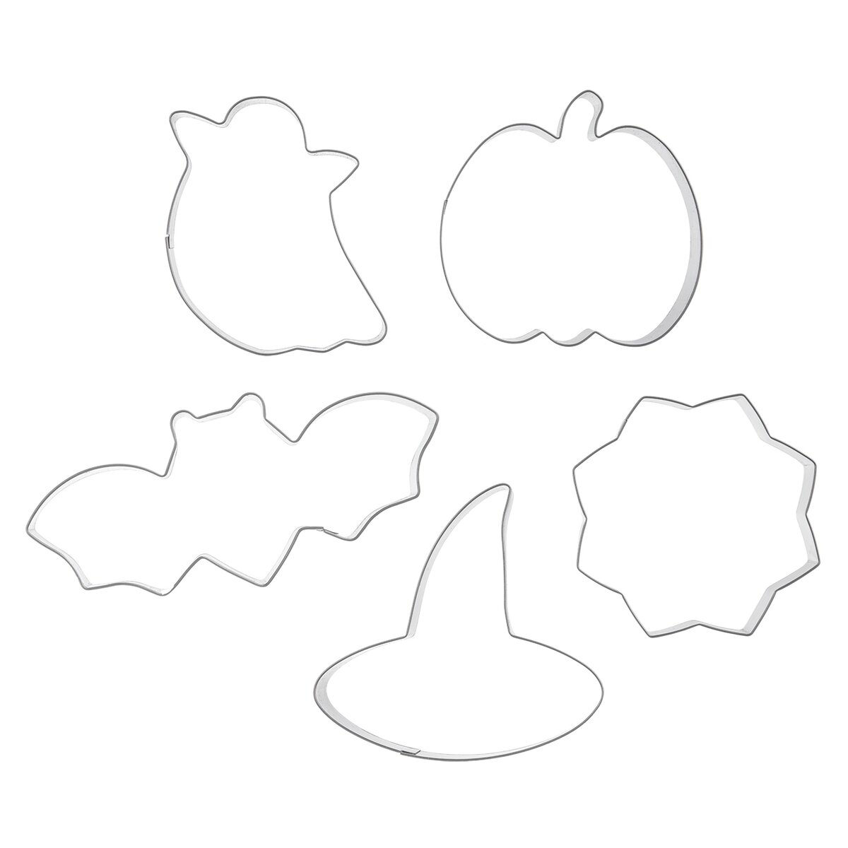 Kód produktu 132609Sada 2 rôznych halloweenskych tvarov - čarodejnícky klobúk, pavučina, tekvica, duch a netopier na vykrajovanie perníčkov, sušienok aj na iné kreatívne práce.