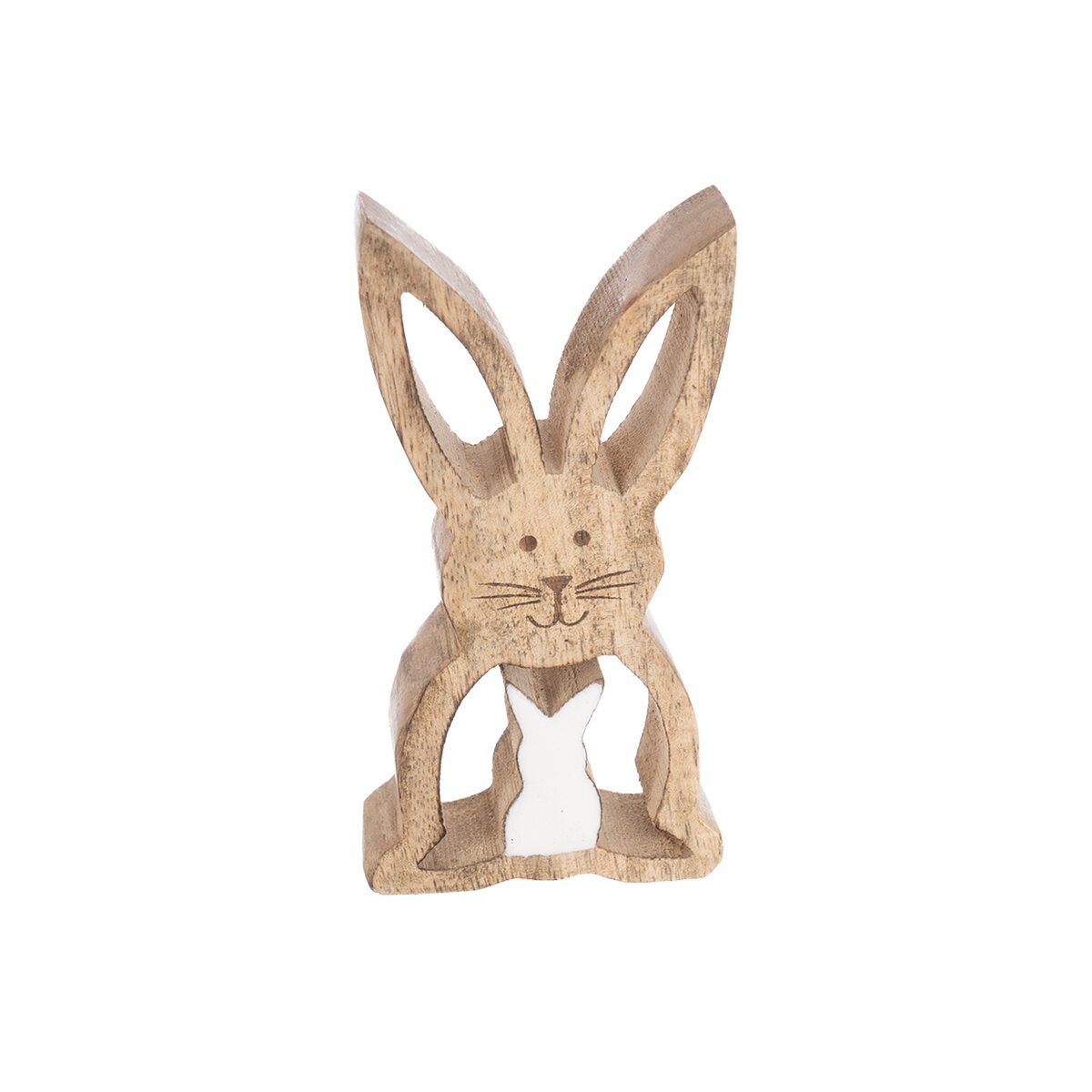 Kód produktu 351865Dekorácia v tvare zajačika ozdobí vašu domácnosť nielen v čase Veľkej noci, využiť ju môžete po celý rok. Vhodná aj ako darček. Materiál: dekoratívne mangové drevo. Rozmery: 6x2,2x12 cm.