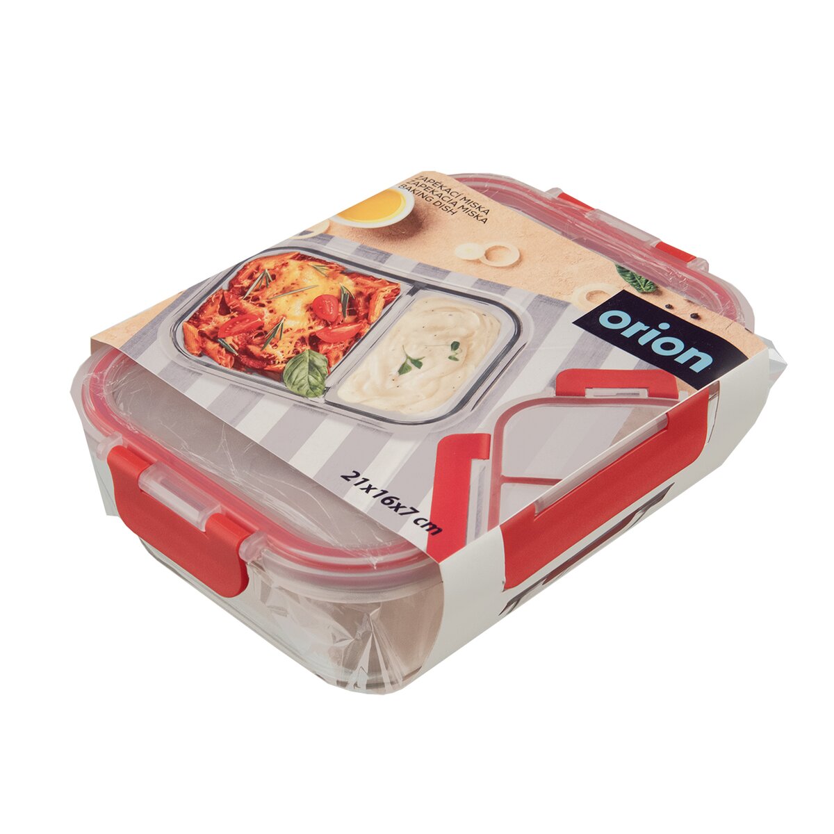 Zapekacia miska z odolného borosilikátového skla je opatrená plastovým viečkom s klipmi a delená na 2 rôzne veľké časti. Umožní uloženie potravín, ich prenášanie bez rozliatia aj priame pečenie a zapekanie v rúre.