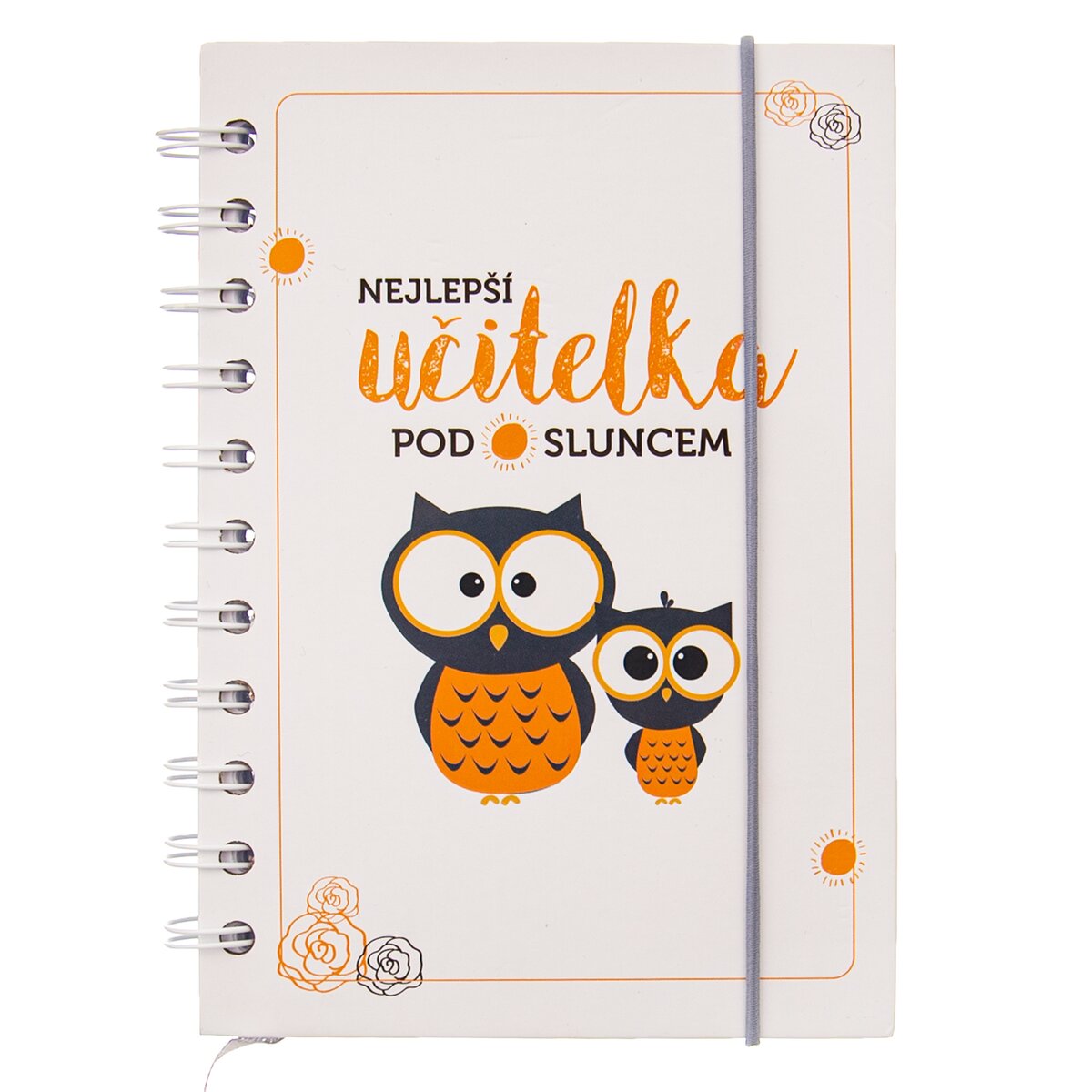 Zápisník veľkosti 12x16 cm, s kovovou krúžkovou väzbou a s pekným motívom NEJLEPŠÍ UČITELKA POD SLUNCEM, ktorý vzišiel priamo z dielne našich dizajnérov.