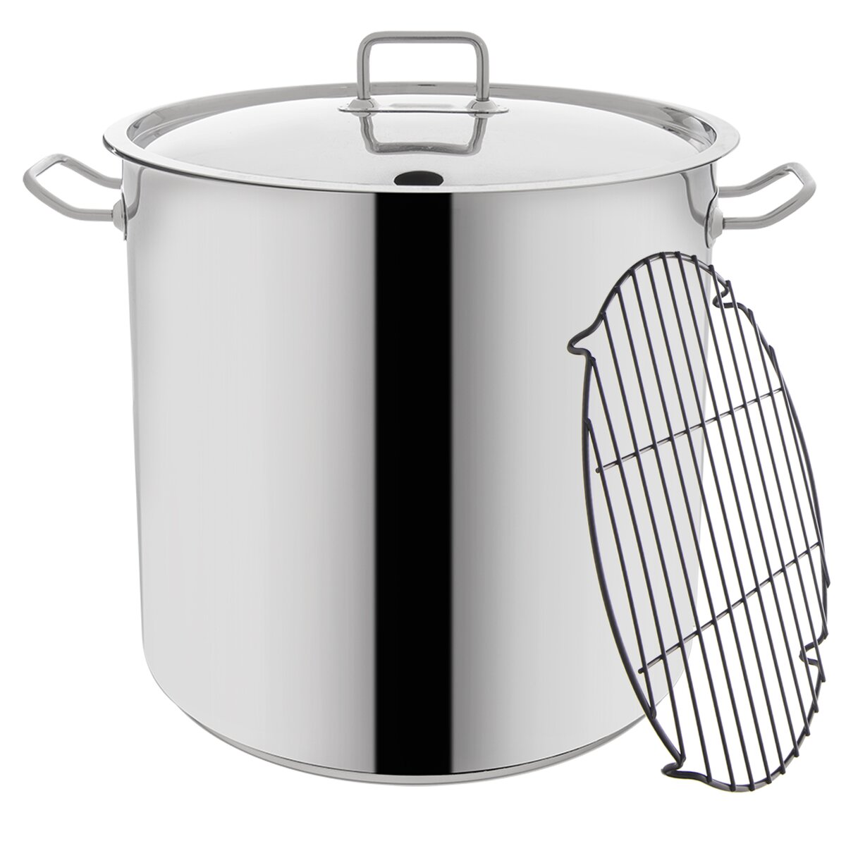 Kód produktu 113311Nerezový zavárací hrniec s objemom 32 litrov, s pokrievkou a roštom slúži na vyberanie horúcich pohárov. Možno ho využiť aj na varenie väčších objemov polievok, mäsa z domácej zabíjačky.