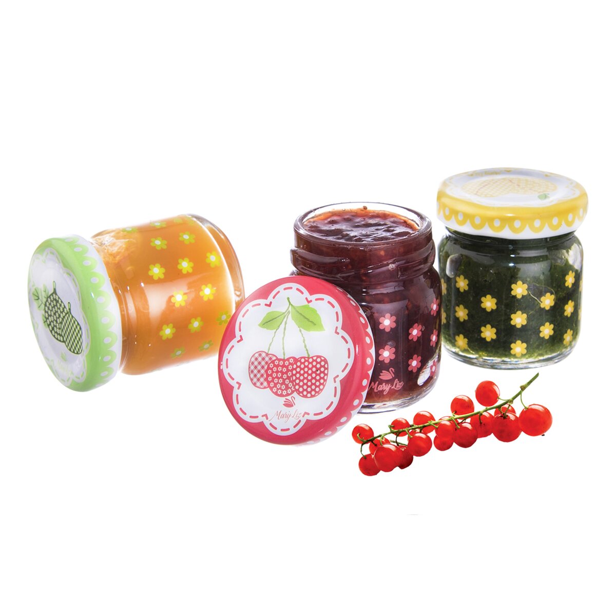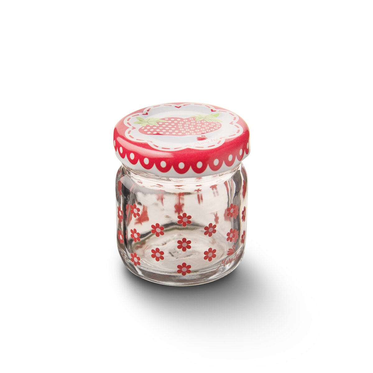 Kód produktu 129709Okrúhly zavárací pohár s potlačou a viečkom so štýlovým dekorom, s objemom 40 ml. Ideálne pre uloženie korenia, zaváranie pečeného čaju, pesta a iných pochutín.