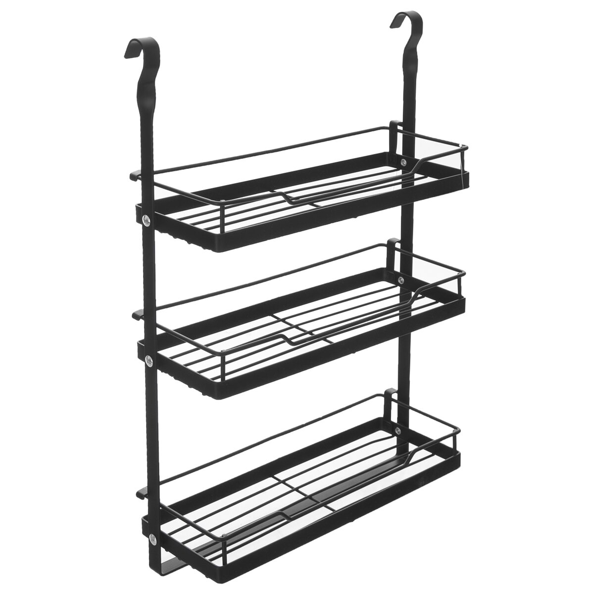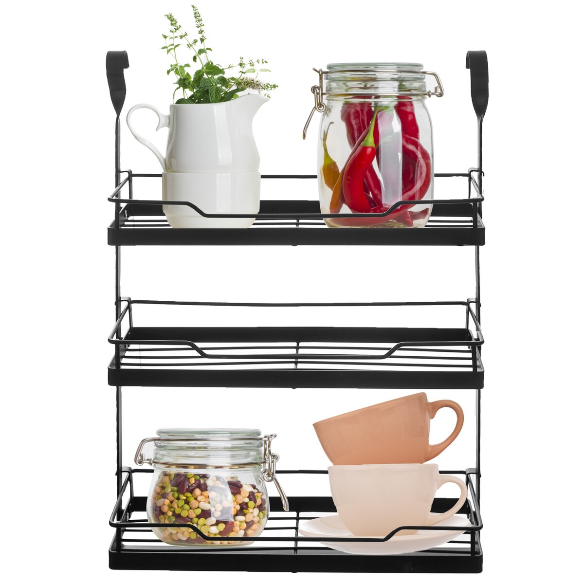 Závesnú 3 poschodovú čiernu poličku umiestnite pomocou háčikov v jej hornej časti na závesný kuchynský systém. Môžete ju využiť na odloženie koreničiek, dochucovadiel alebo rôznych predmetov – kuchárky, zošitov s receptami, kvetináčov s bylinkami.