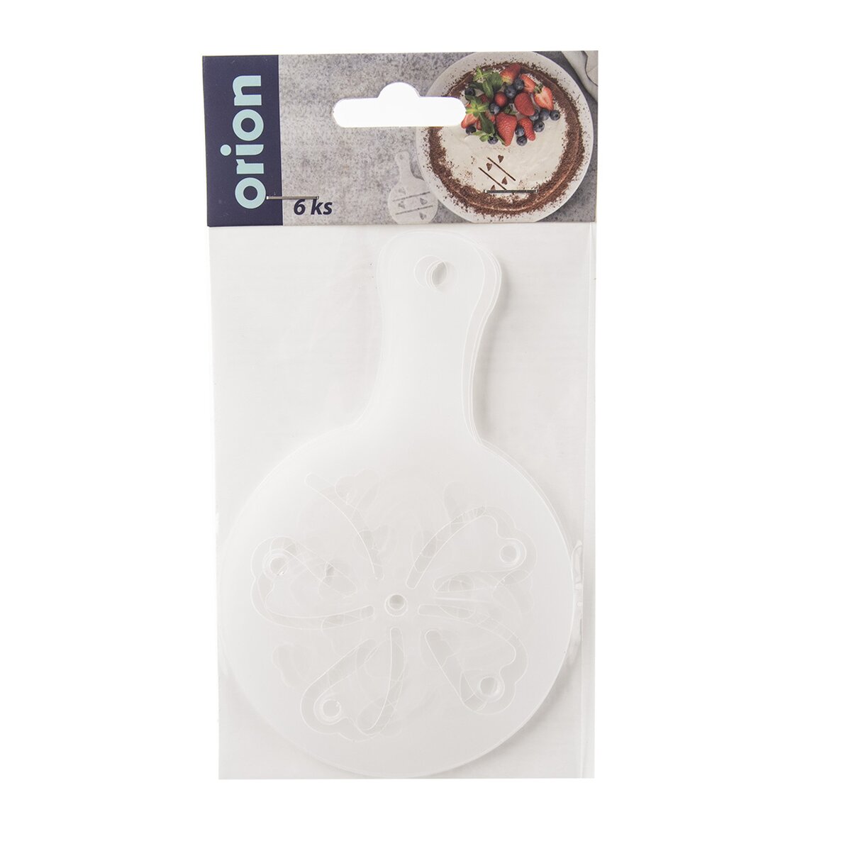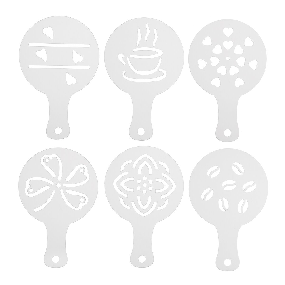 Kód produktu 153032Sada 6 kusov plastových šablón s univerzálnymi motívmi kávy, srdiečok, štvorlístka a pod., určených na efektné zdobenie cappuccina, smotanových pohárov, pudingov či tort.