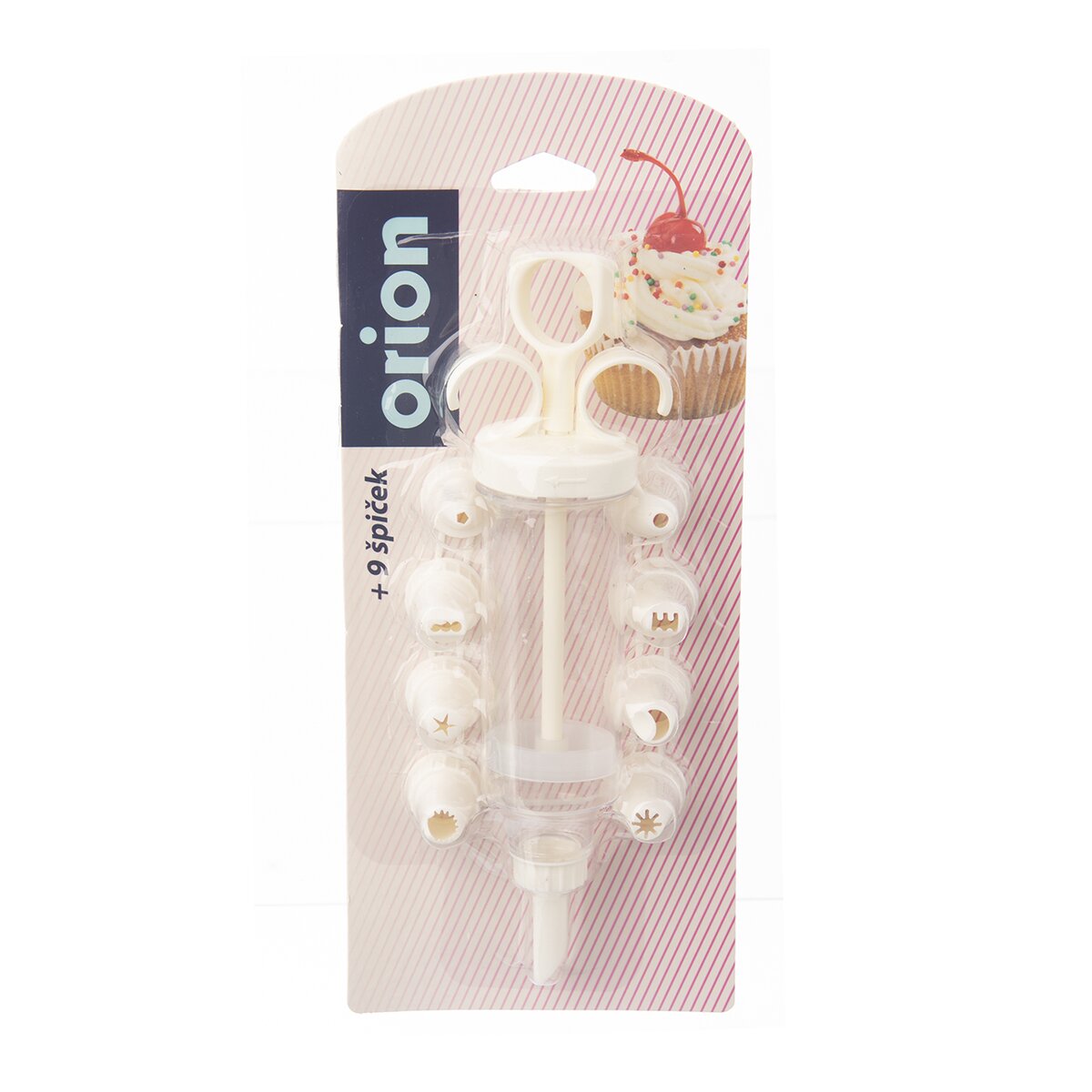 Kód produktu 142259Sada zdobičky s piestom a 9 vymeniteľnými špičkami so závitom je určená na zdobenie zákuskov, cukroviniek, jednohubiek krémami, šľahačkou aj nátierkami.